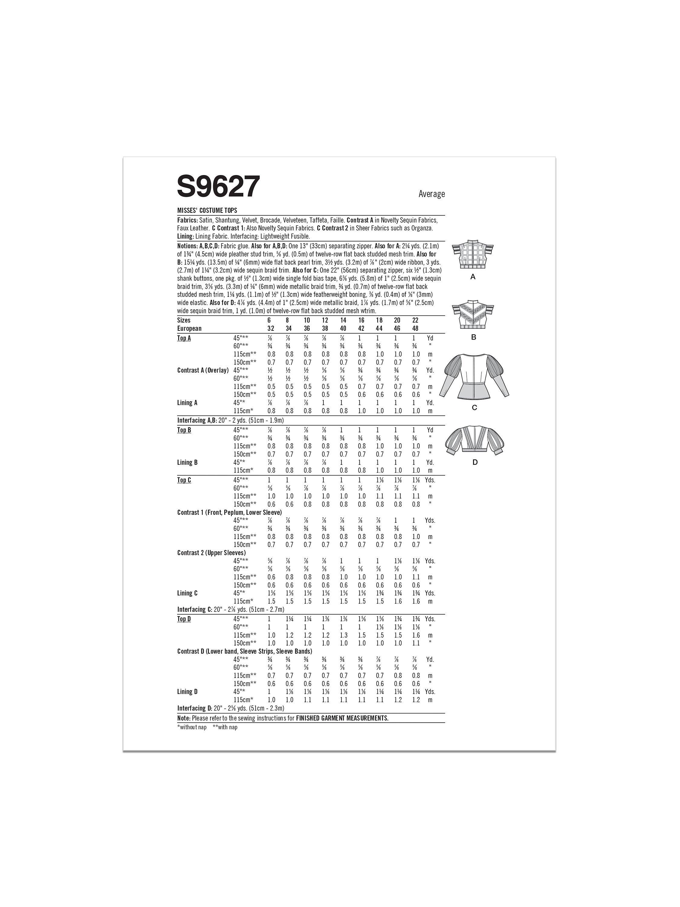 SimplicityMisses' Costume Top Sewing Pattern, S9627, R5