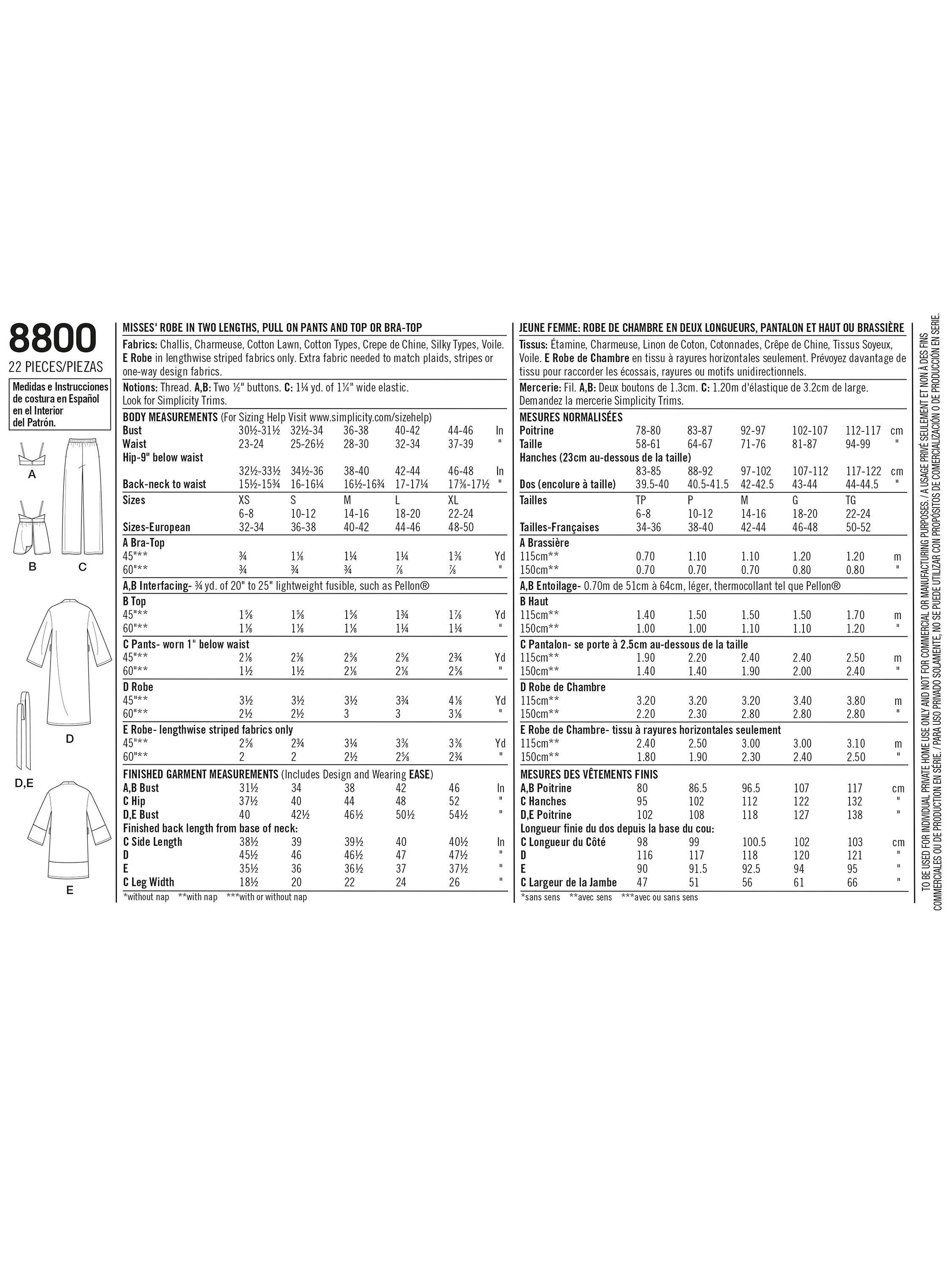 SimplicityMisses' Cosy Loungewear Set Sewing Pattern, S8800, A