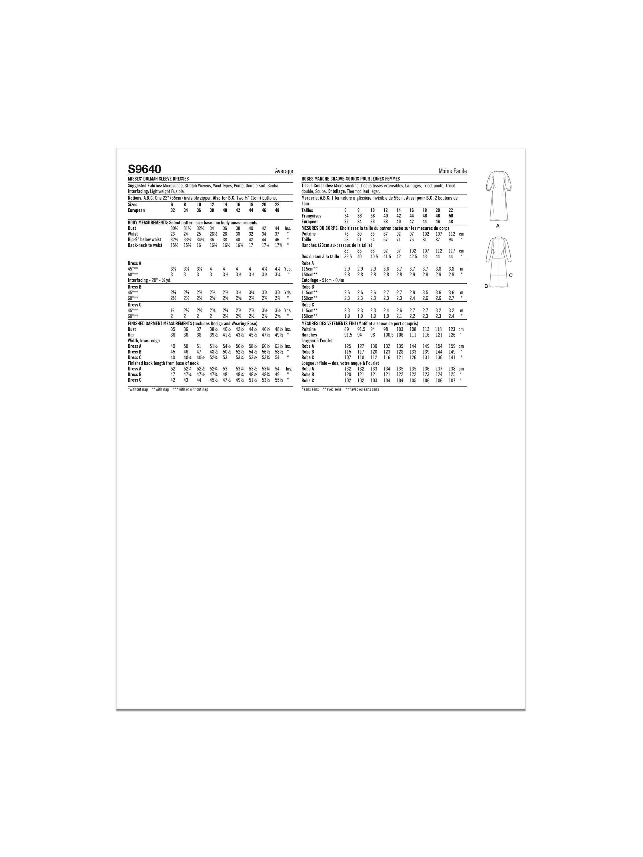 SimplicityMisses' Dolman Sleeve Dresses Sewing Pattern, S9640, R5