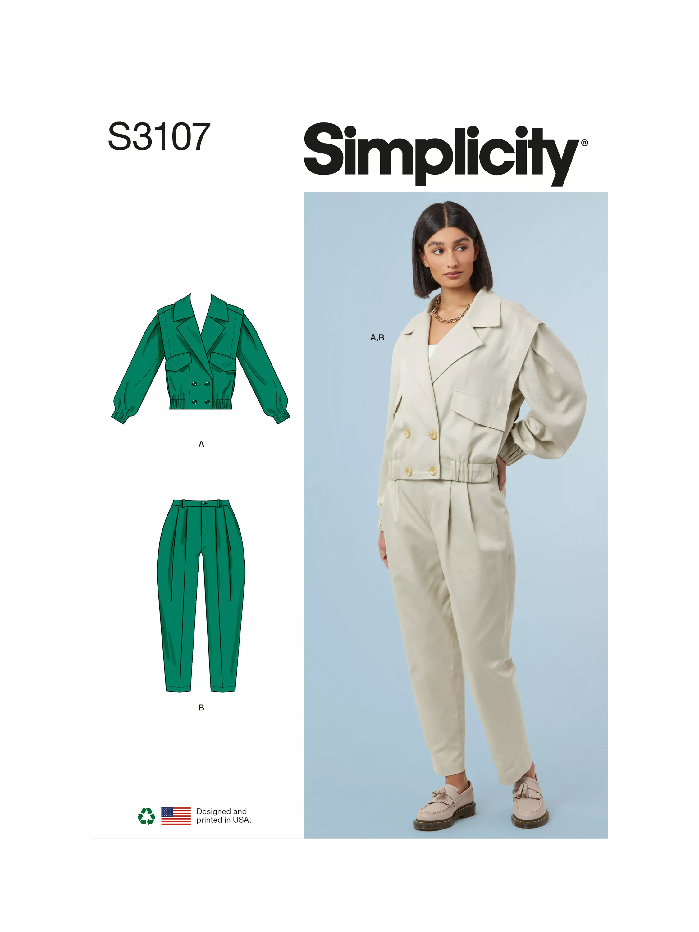 SimplicityMisses' Double Breasted Jacket and Cropped Pants Sewing Pattern, S3107