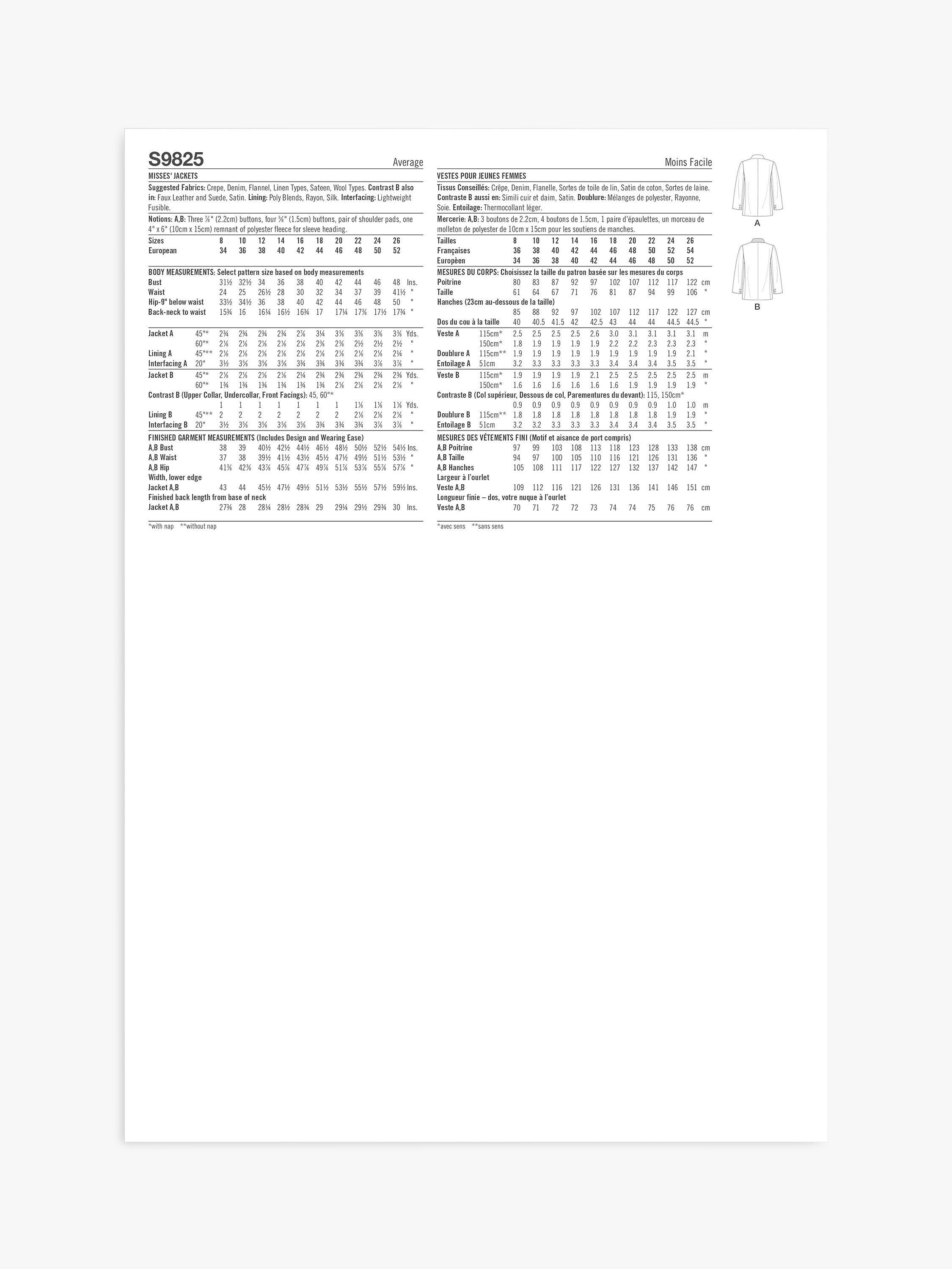 SimplicityMisses' Double Breasted Jacket Sewing Pattern, S9825, K5
