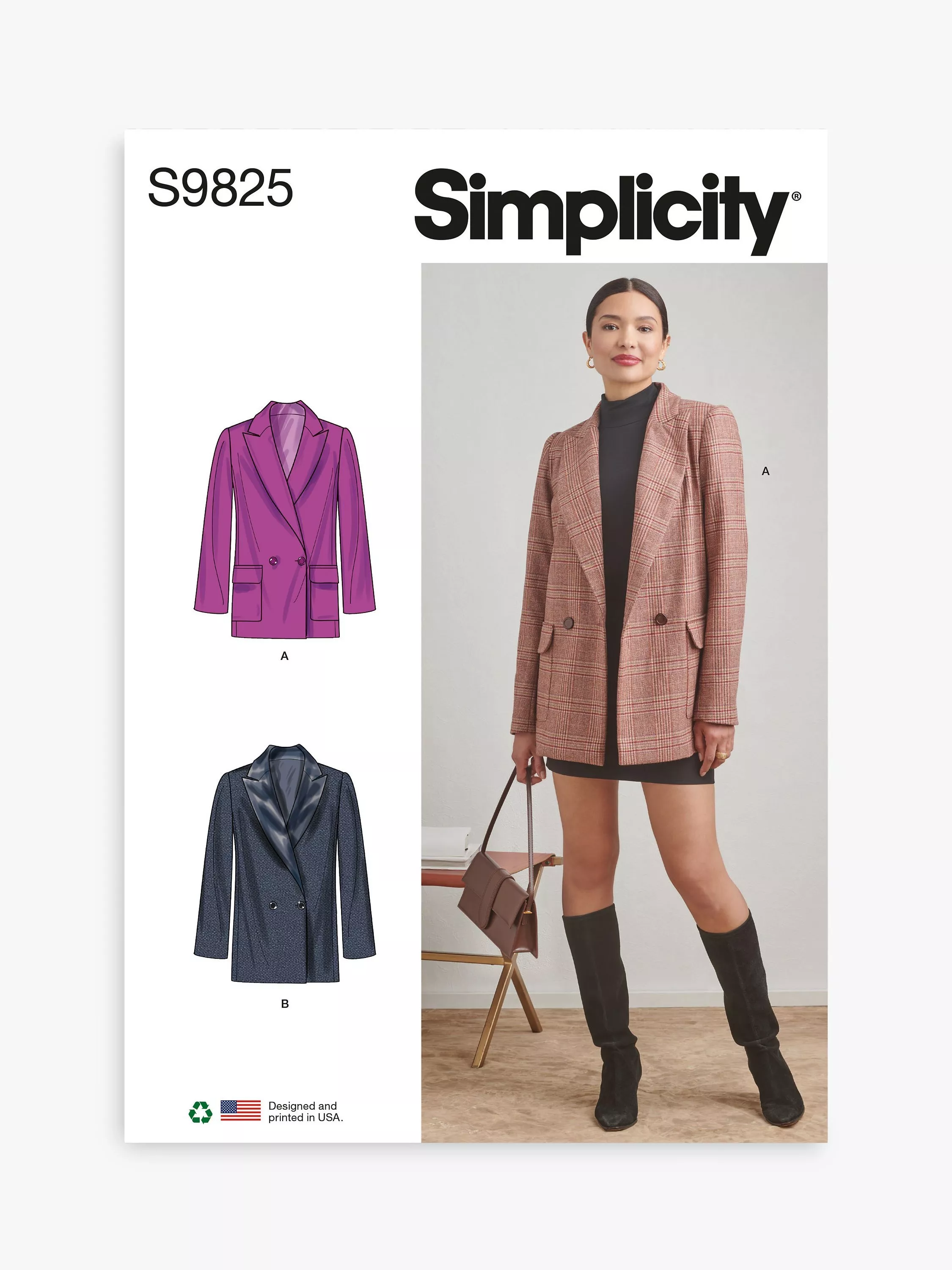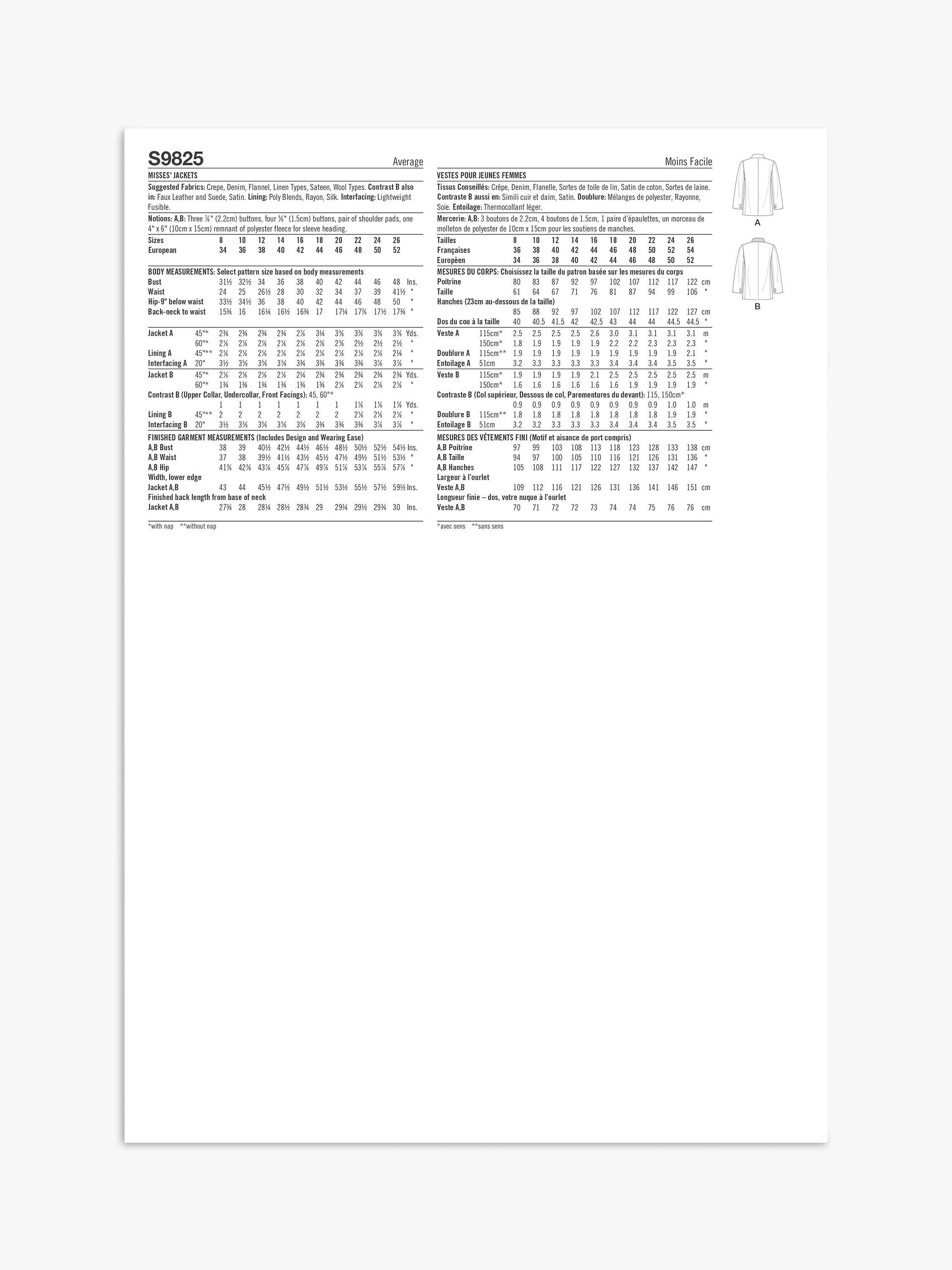 SimplicityMisses' Double Breasted Jacket Sewing Pattern, S9825, Y5