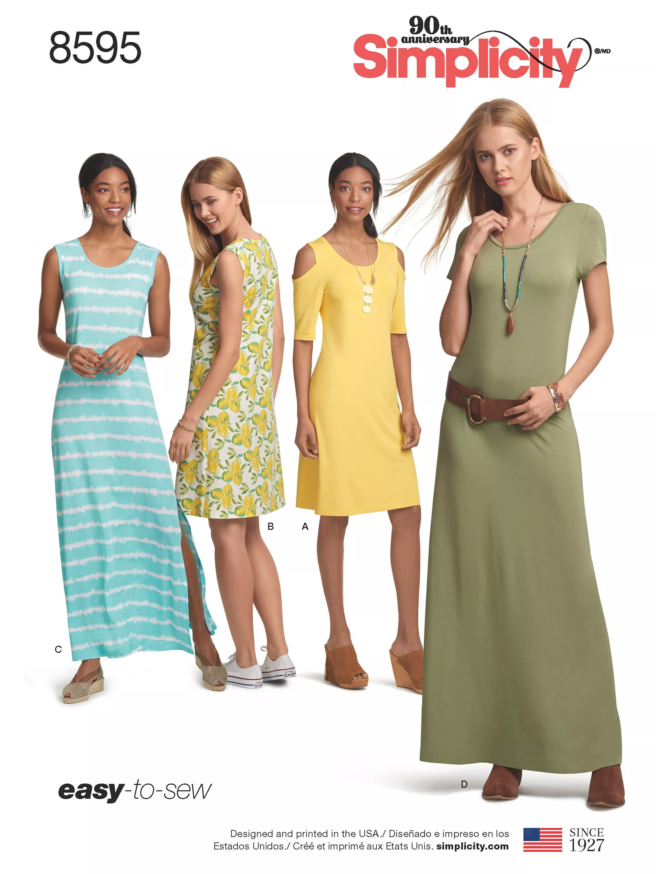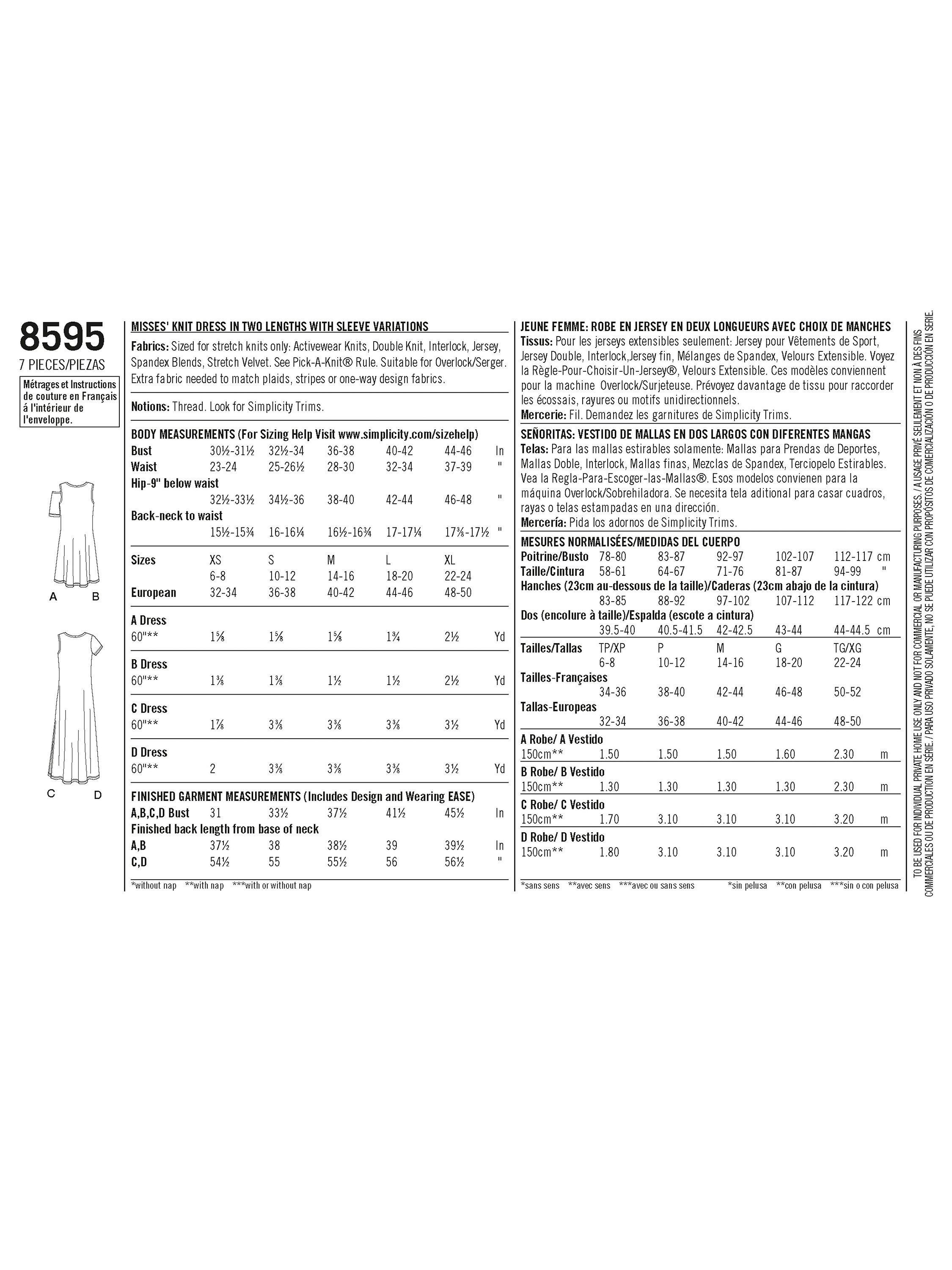 Easy to Sew knit dress with sleeve and length variations. Sleeve options include cold shoulder, sleeveless or short sleeve. All views feature a crew neckline and can be made in mini or maxi length.