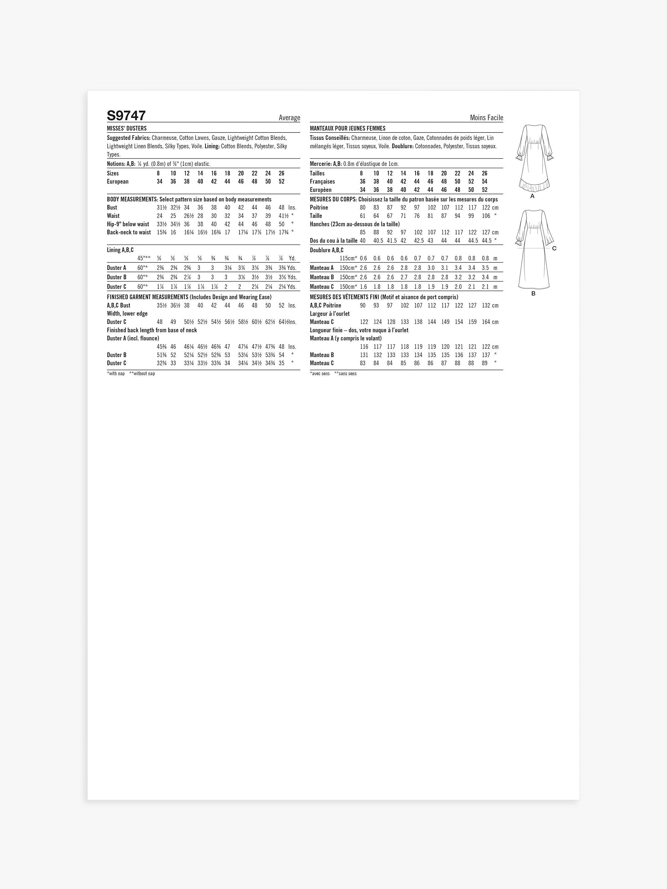 SimplicityMisses' Duster Jackets Sewing Pattern, S9747, K5