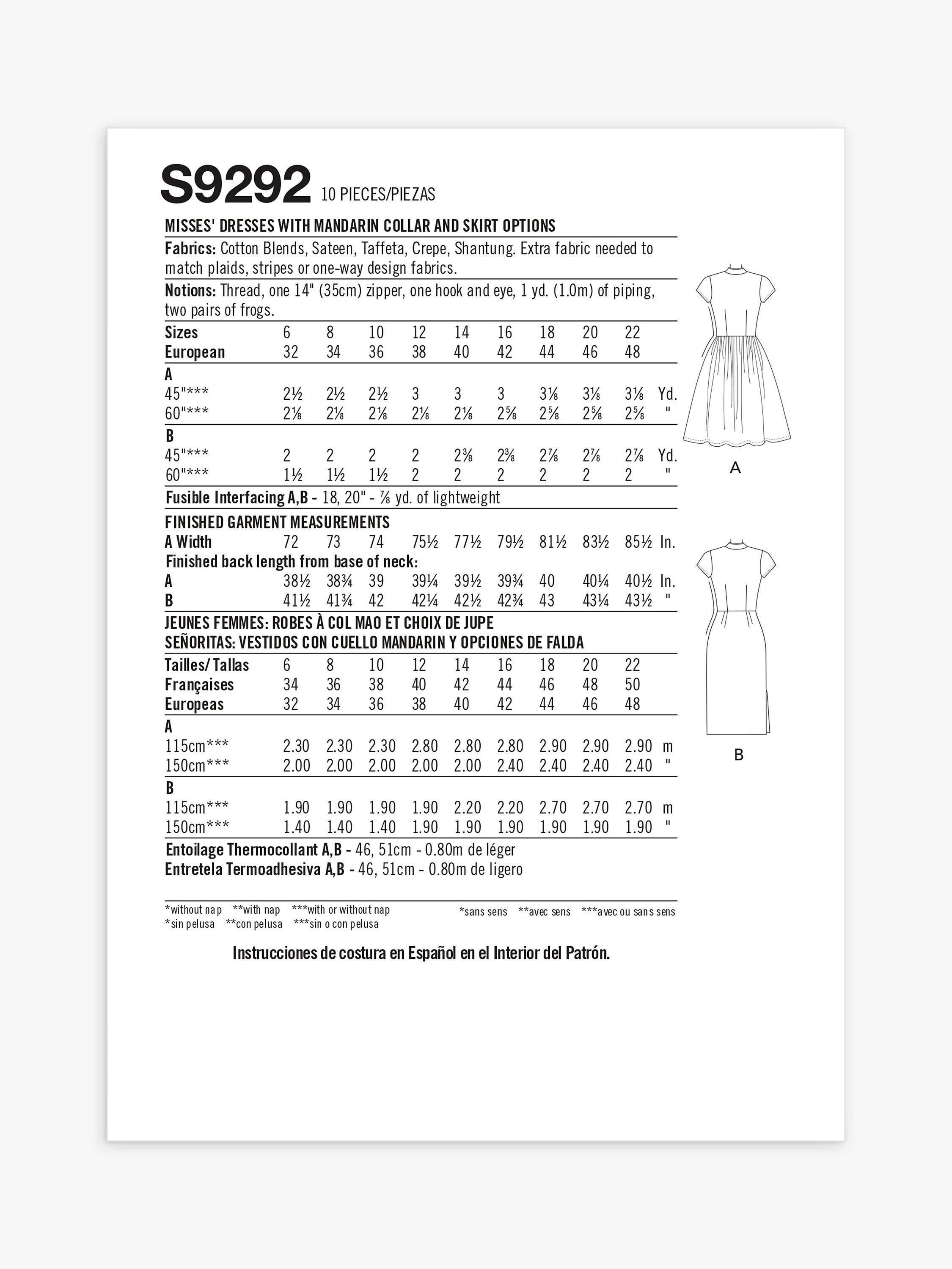 SimplicityMisses' Fitted Dress Sewing Pattern, S9292