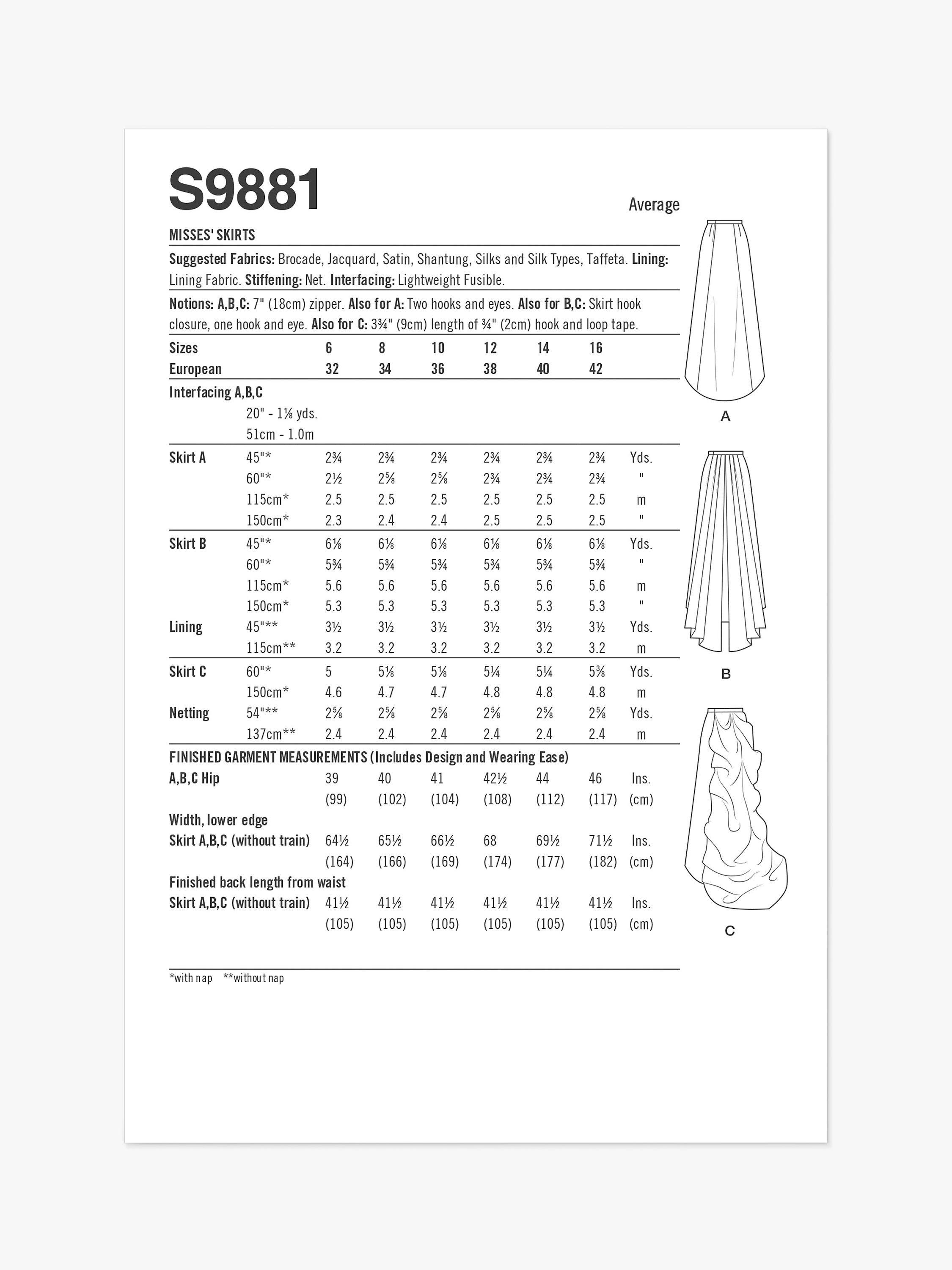 SimplicityMisses' Floor Length Skirts Sewing Pattern, S9881