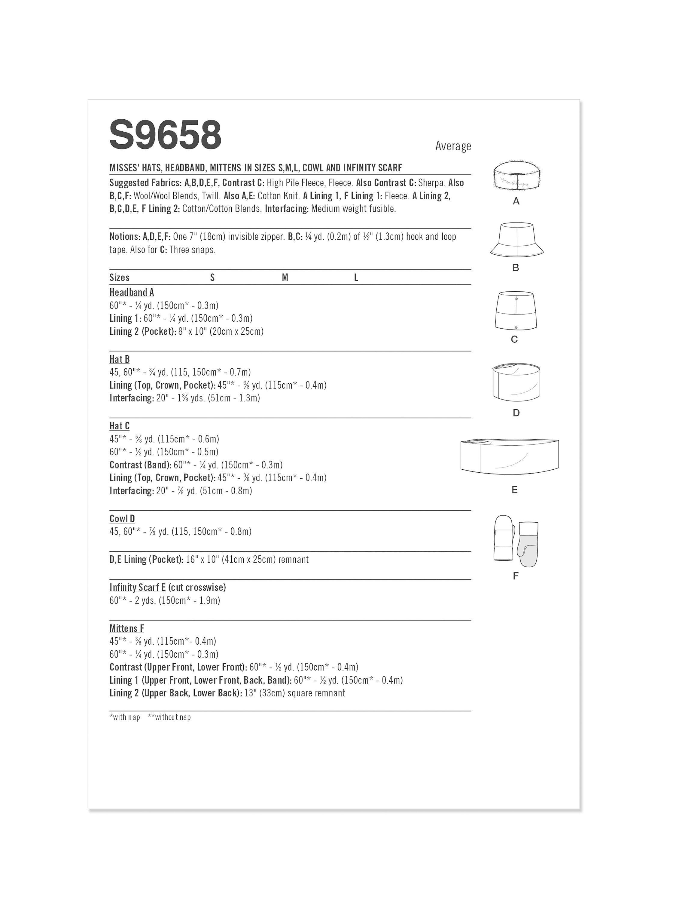 SimplicityMisses' Hats, Mittens and Headband Sewing Pattern, S9658A