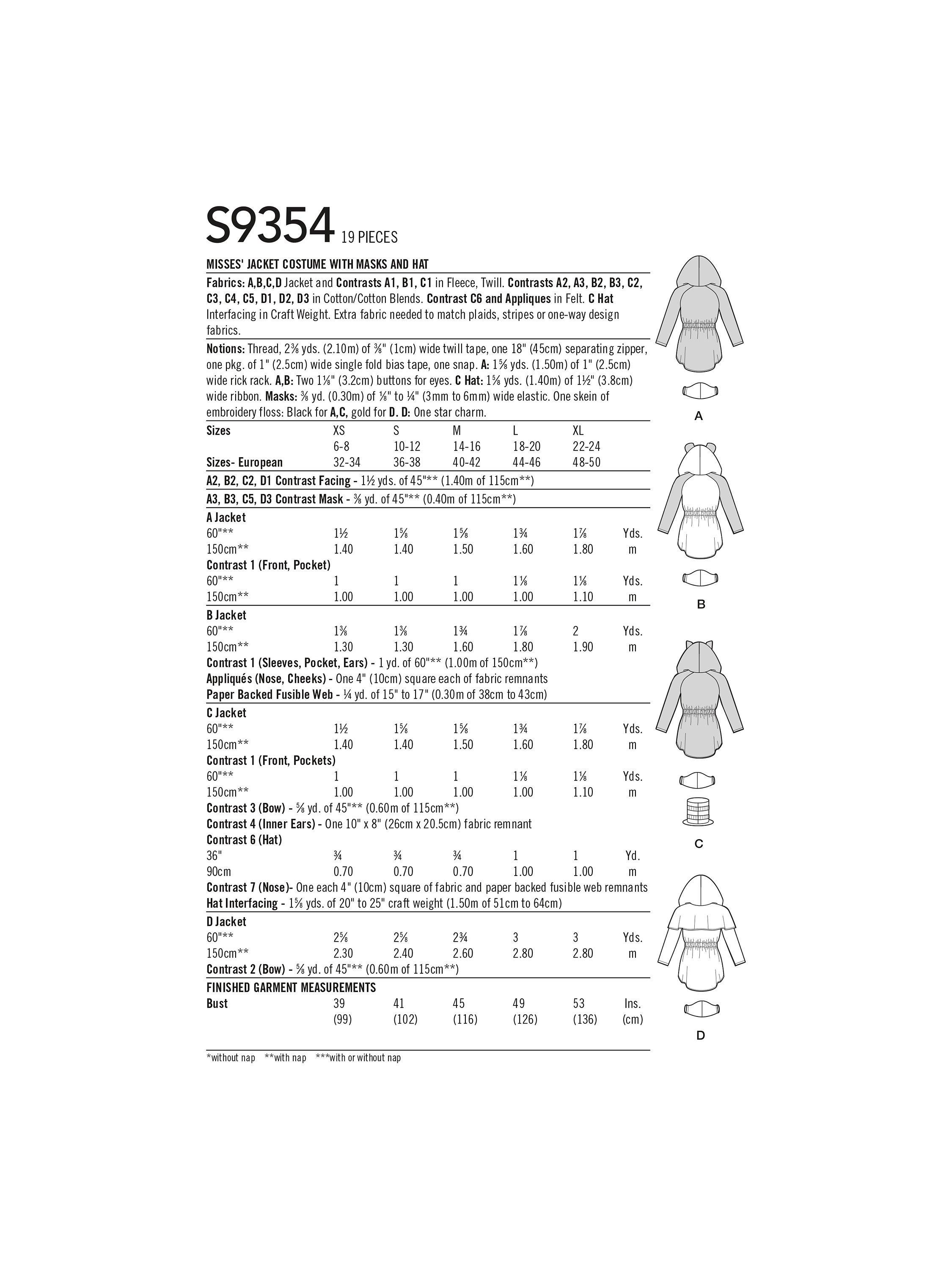 SimplicityMisses' Hoodie, Mask and Hat Costume Sewing Pattern, S9354, A