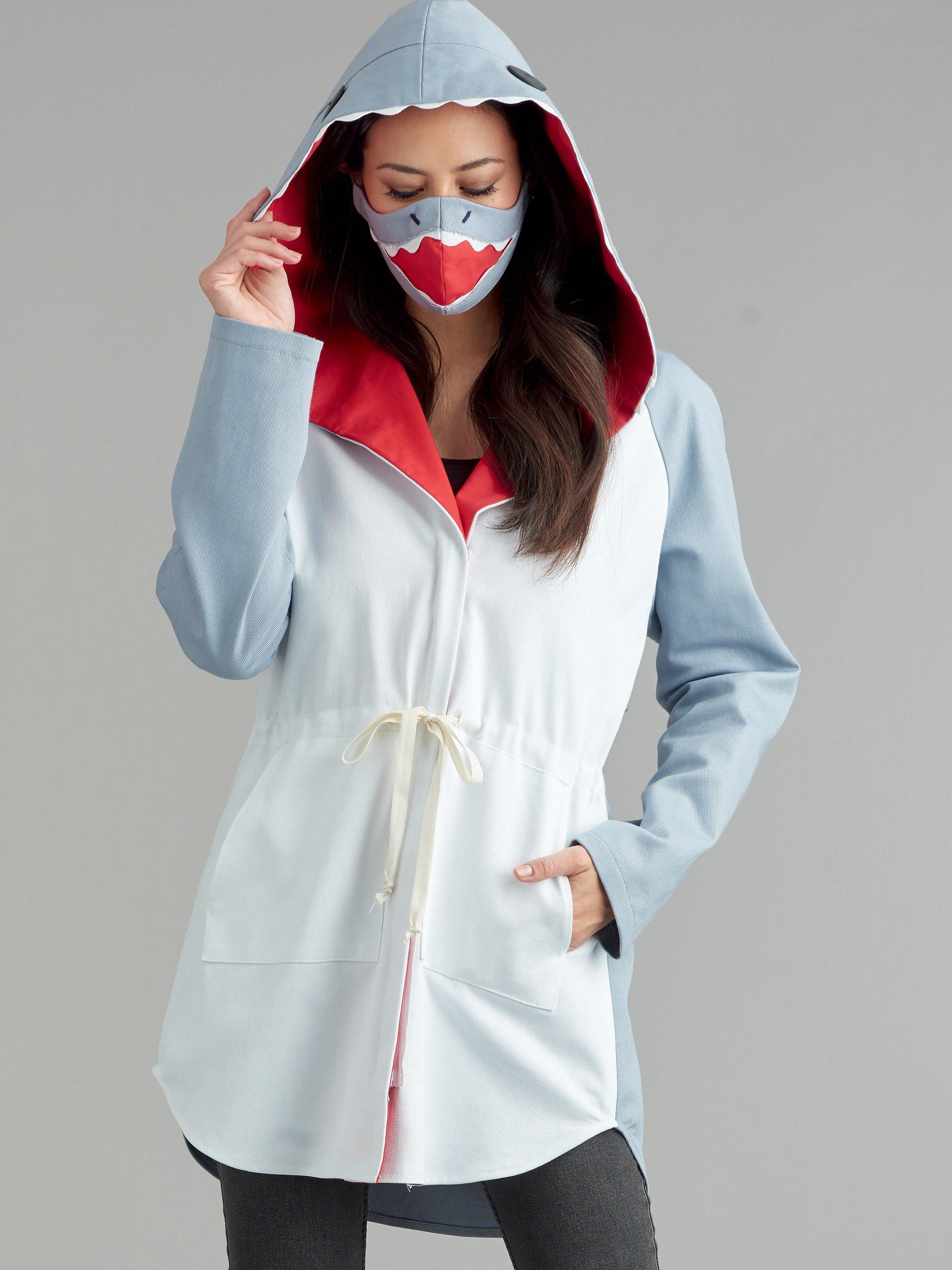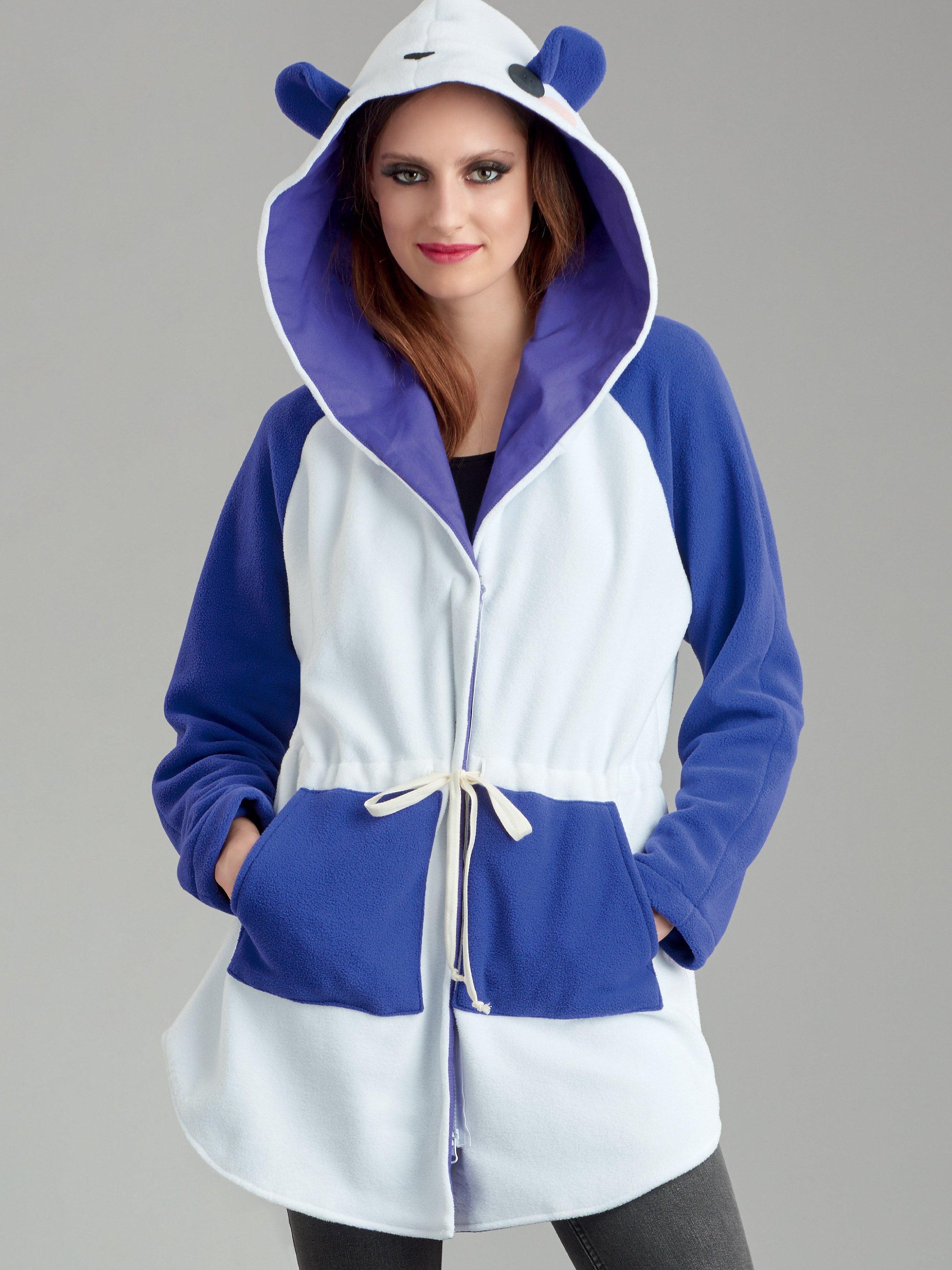 Hooded anorak has raglan sleeves, front separating zipper closure and ties to cinch your waist. Add fun details to create a Shark, Panda, Cat and Enchanting Godmother.