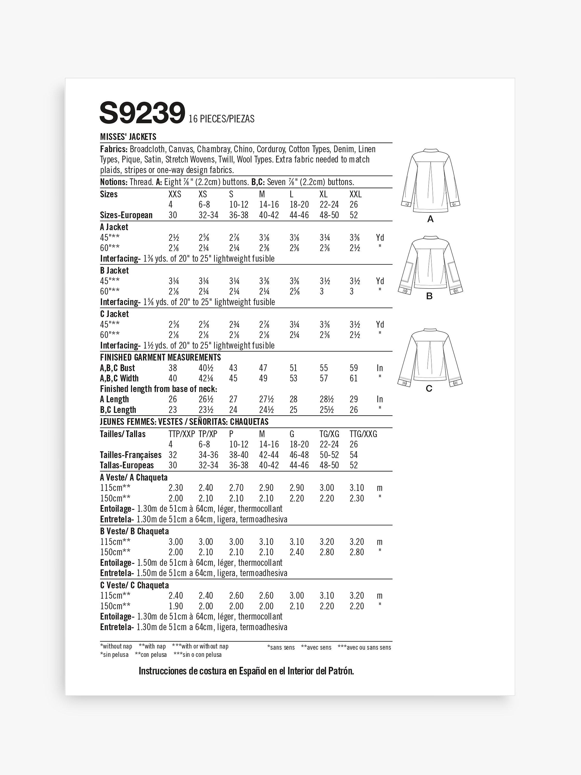 SimplicityMisses' Jacket Sewing Pattern, S9239, A