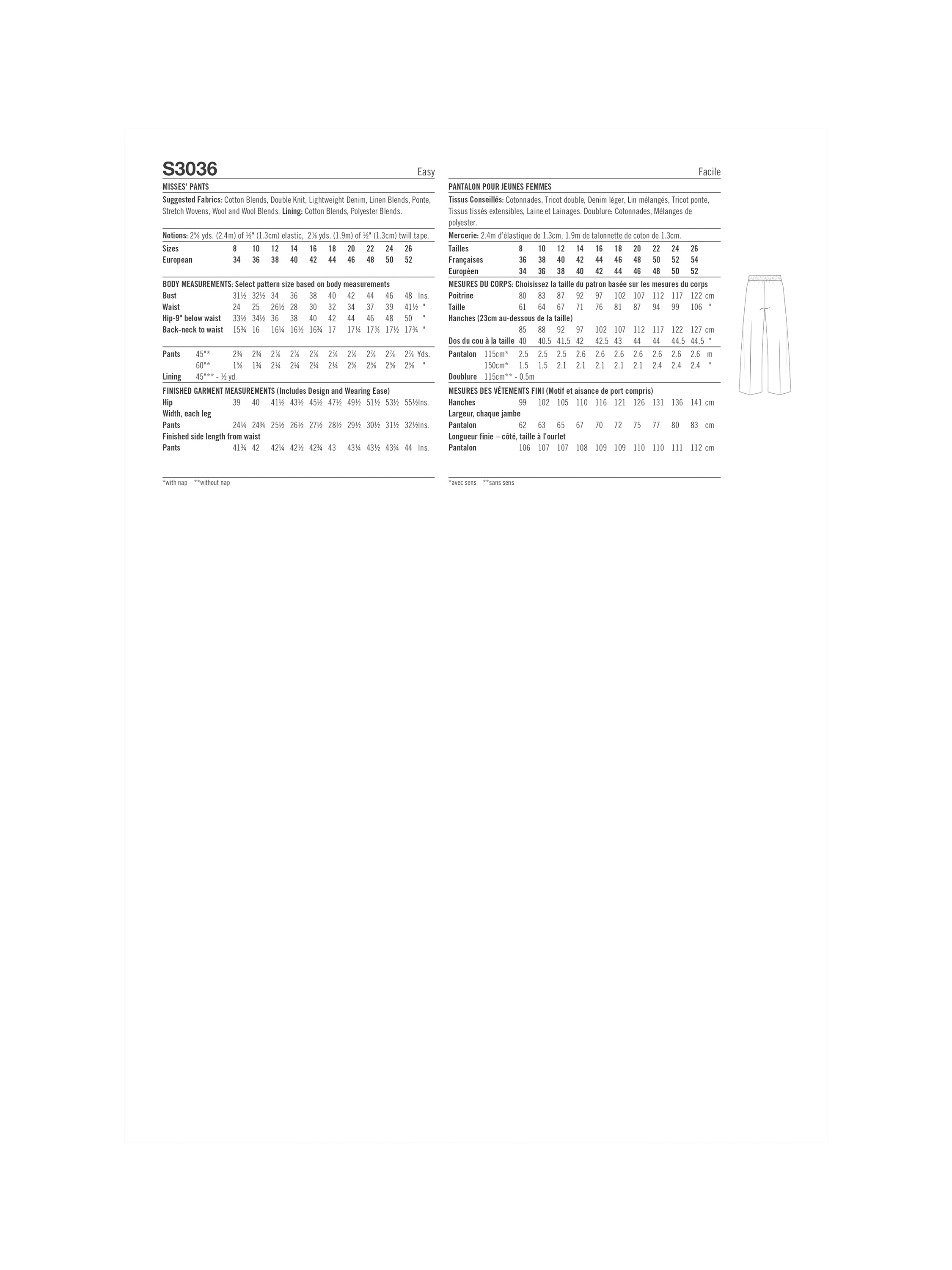 SimplicityMisses' Jogger Pants Sewing Pattern, S3036