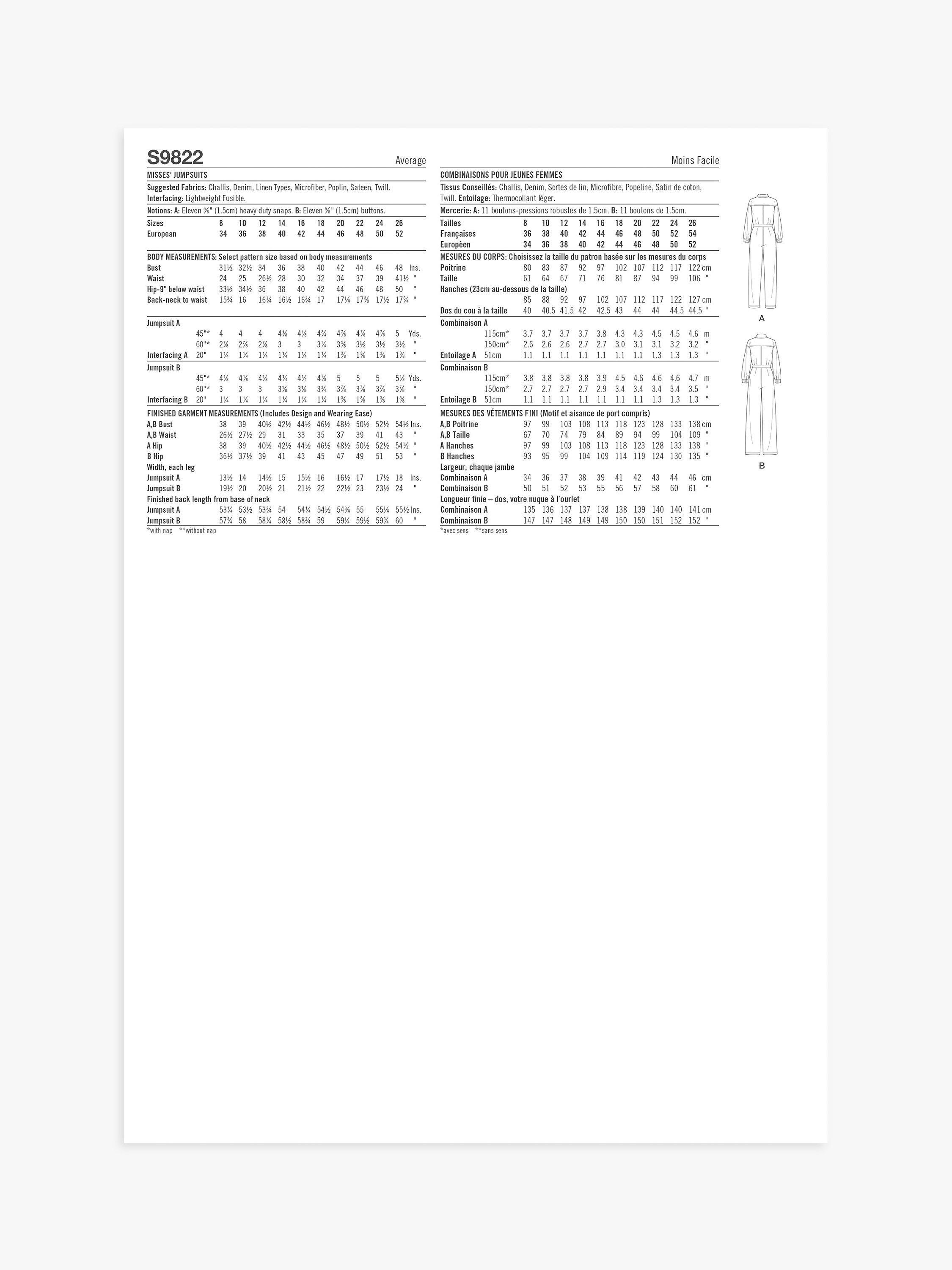 SimplicityMisses' Jumpsuits Sewing Pattern, S9822, Y5