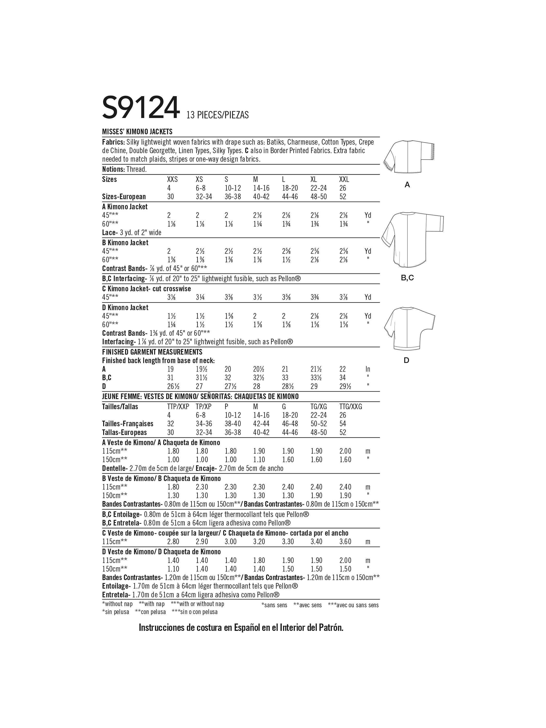 SimplicityMisses' Kimono Jackets Sewing Pattern, S9124