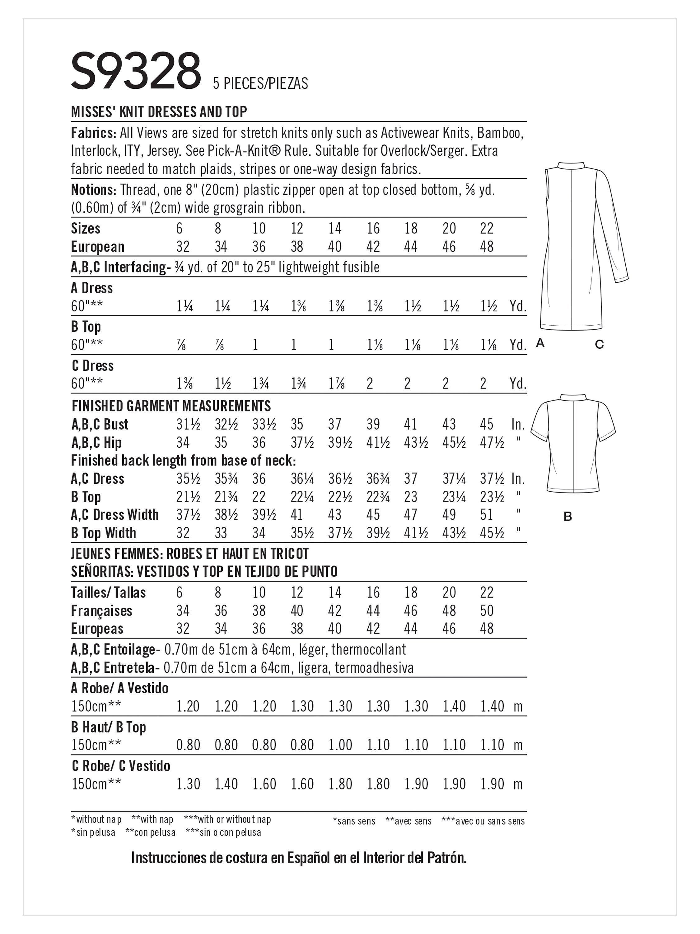 SimplicityMisses' Knit Zip Front Dress Sewing Pattern, S9328