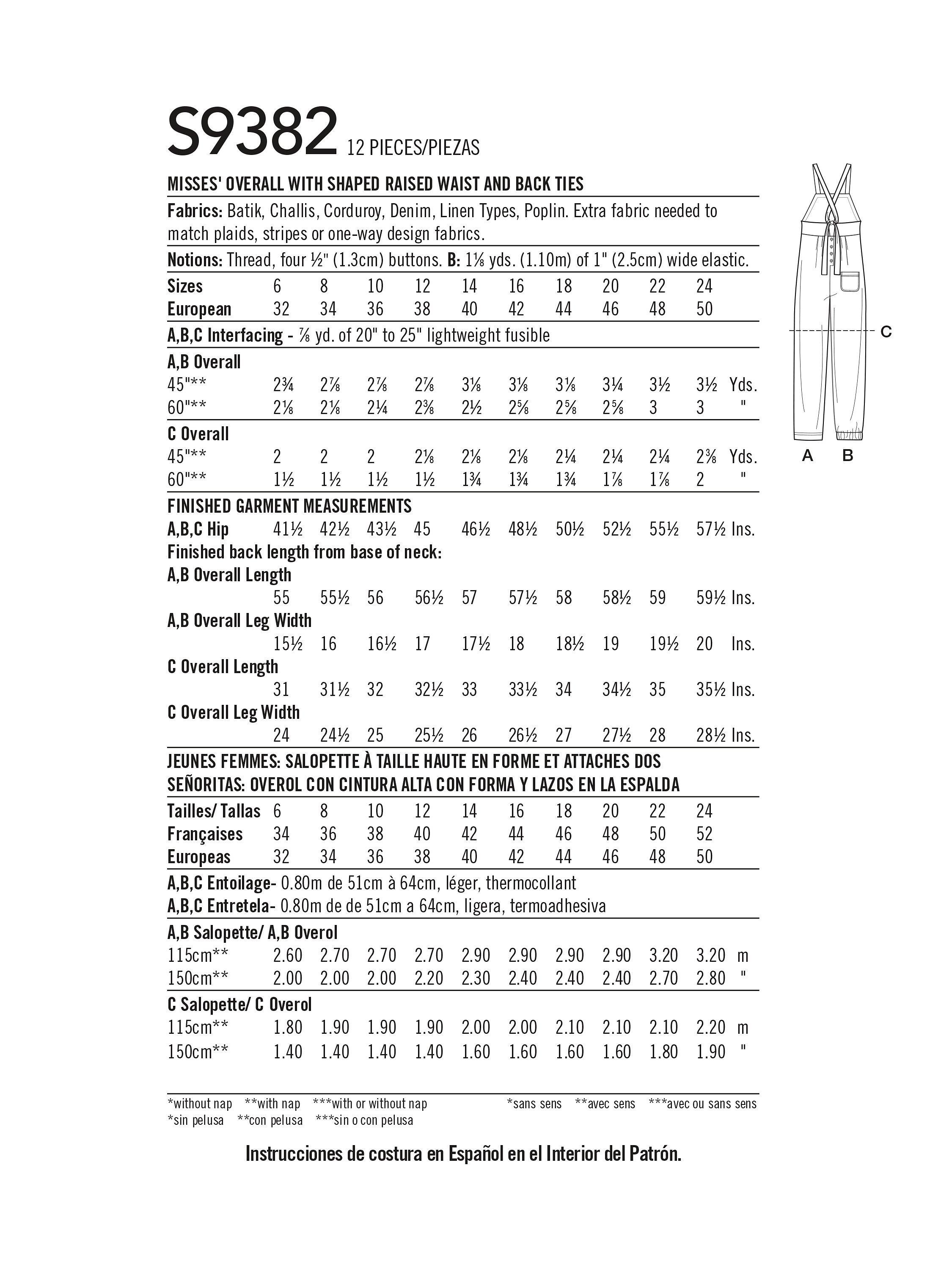 SimplicityMisses' Overall Sewing Pattern, SS9382, H5