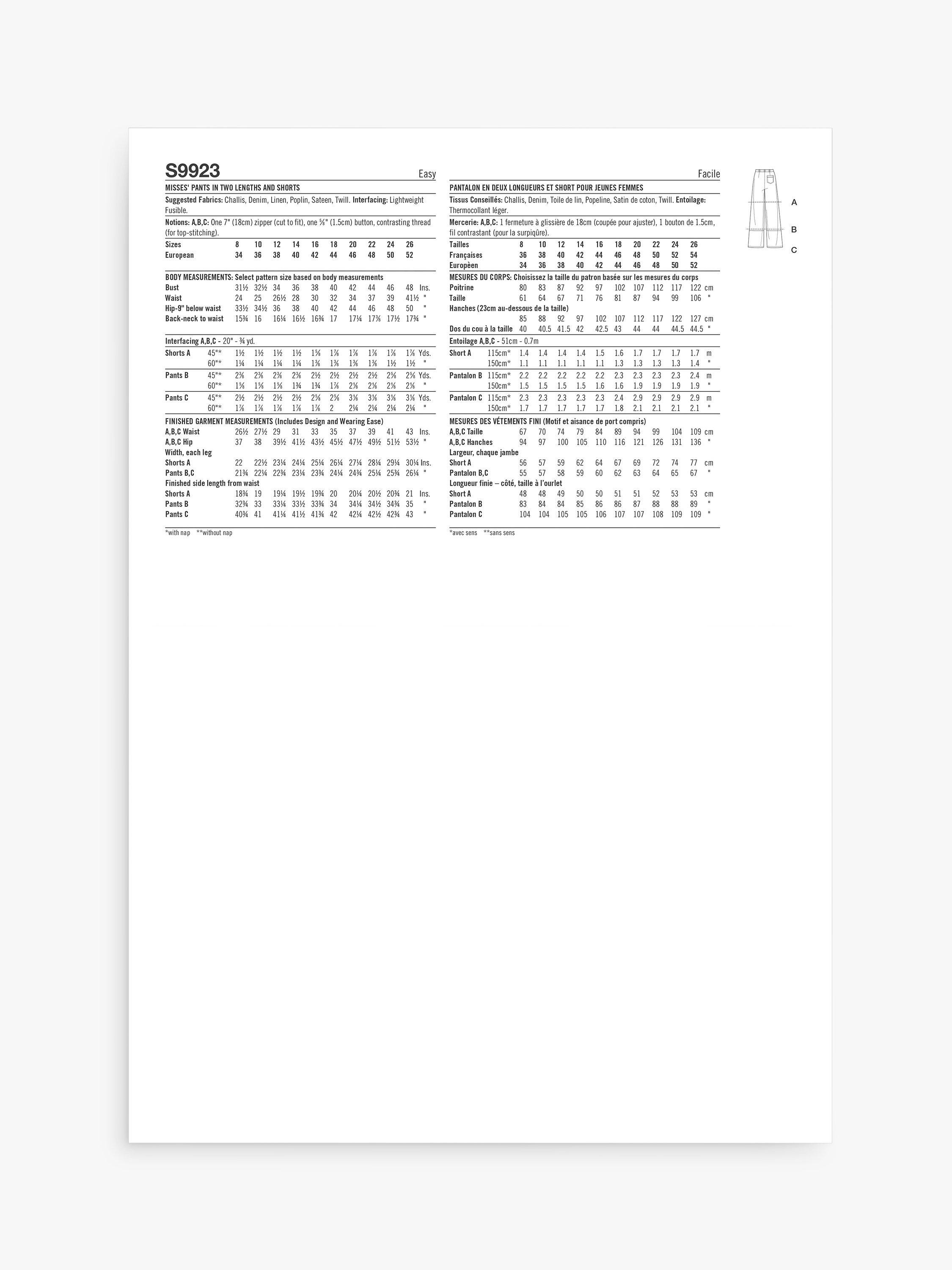 SimplicityMisses' Pants and Shorts Sewing Pattern, S9923