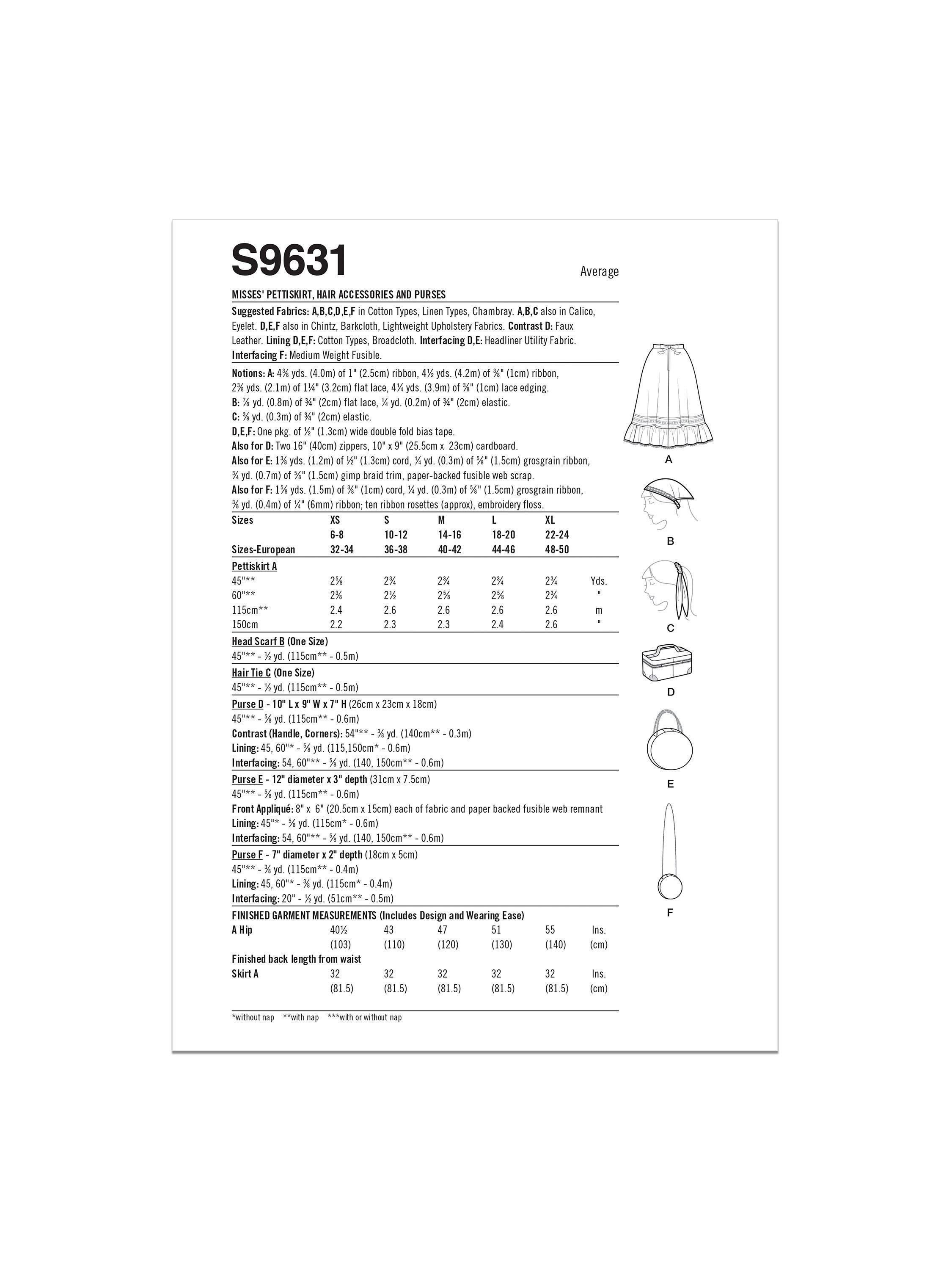 SimplicityMisses' Pettiskirt and Accessories Sewing Pattern, S9631