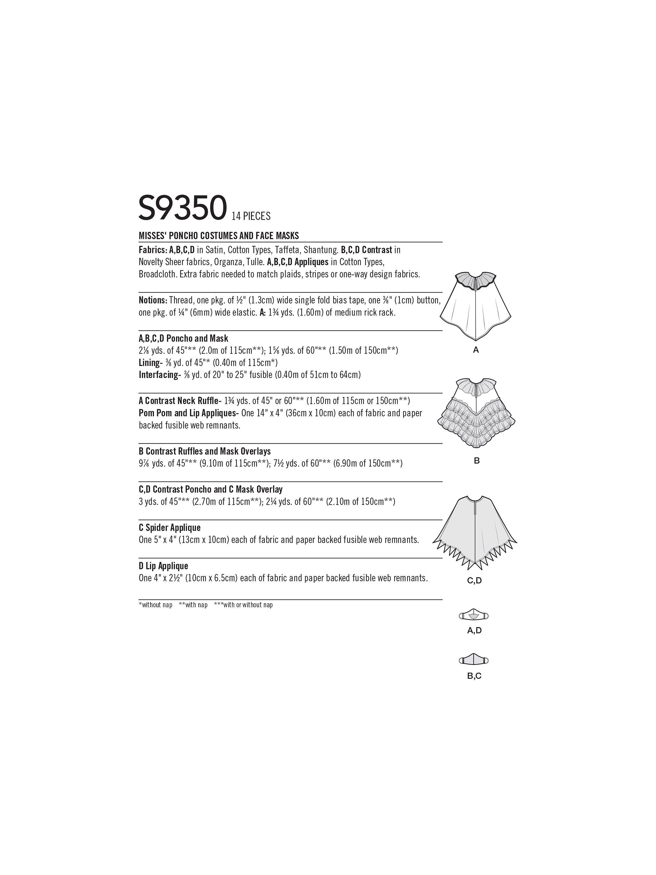 SimplicityMisses' Poncho Costume Sewing Pattern, SS9350, OS