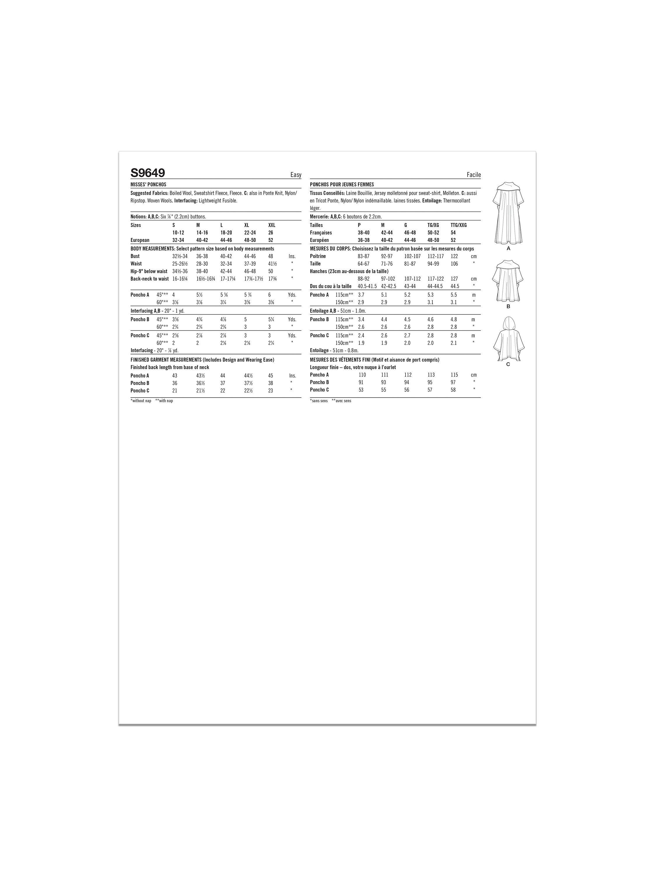 SimplicityMisses' Ponchos Sewing Pattern, S9649A