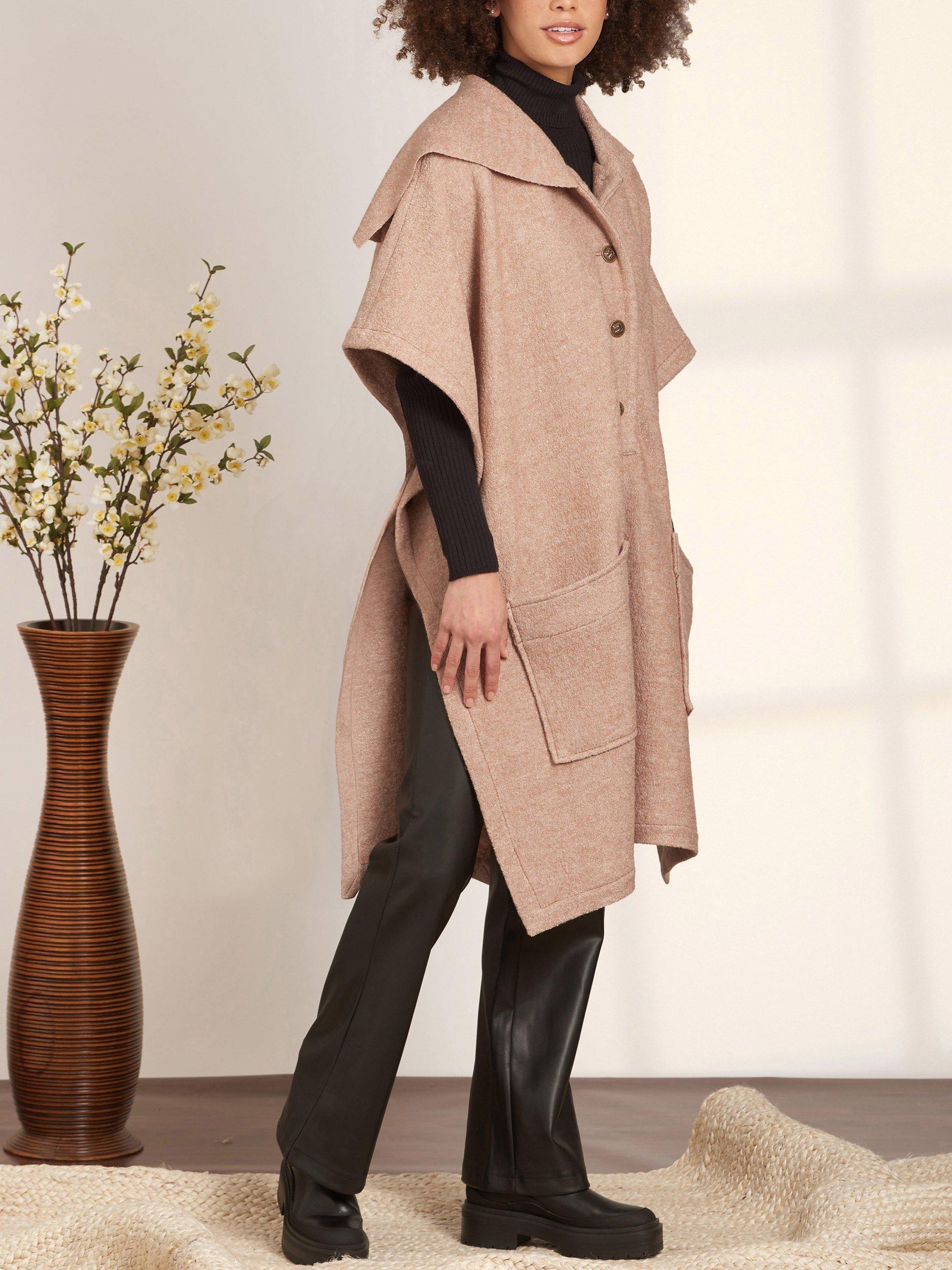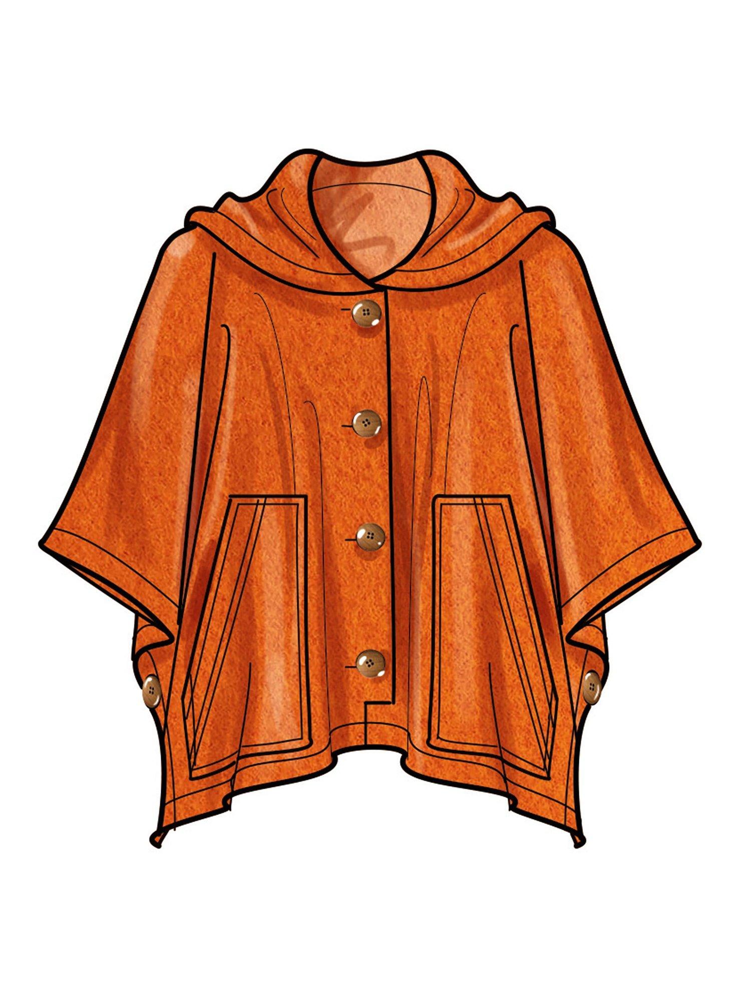 Pullover poncho in three lengths has pocket detail with hood or raw-edged cape collar options.