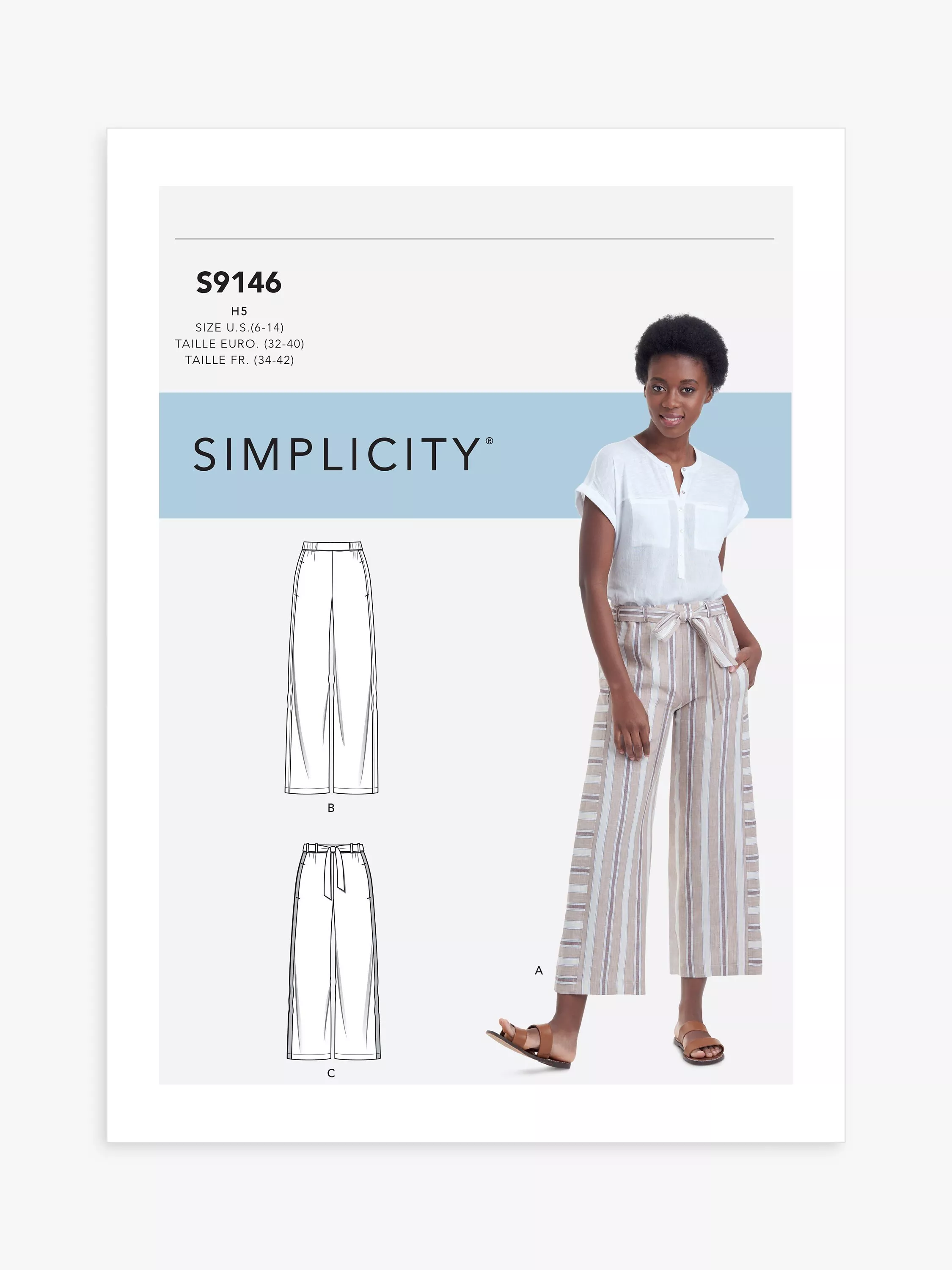 Misses' pull-on pants with side panel, length and tie options.