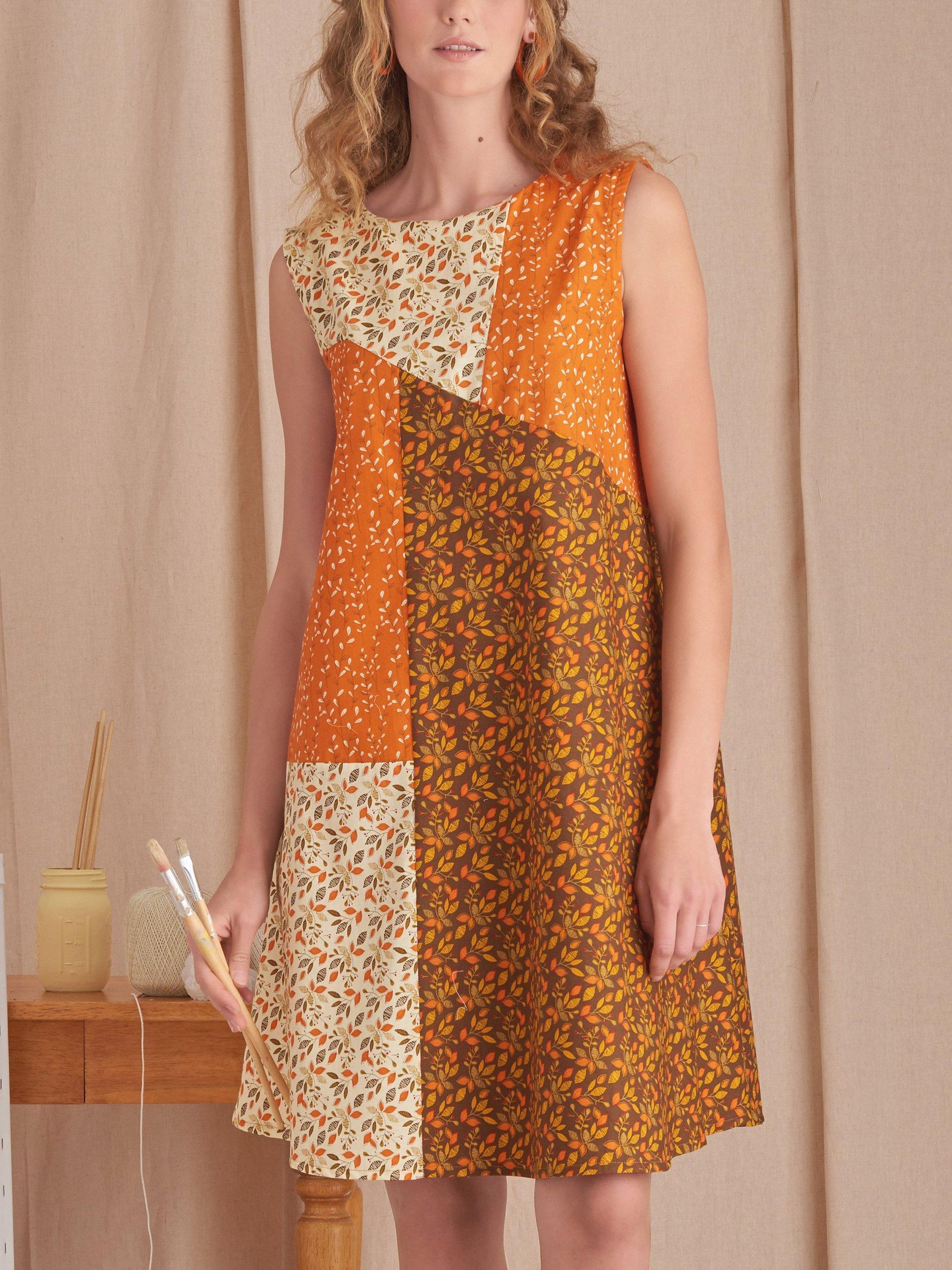 Dresses have patchwork piecing, perfect for creative fabric mixing.