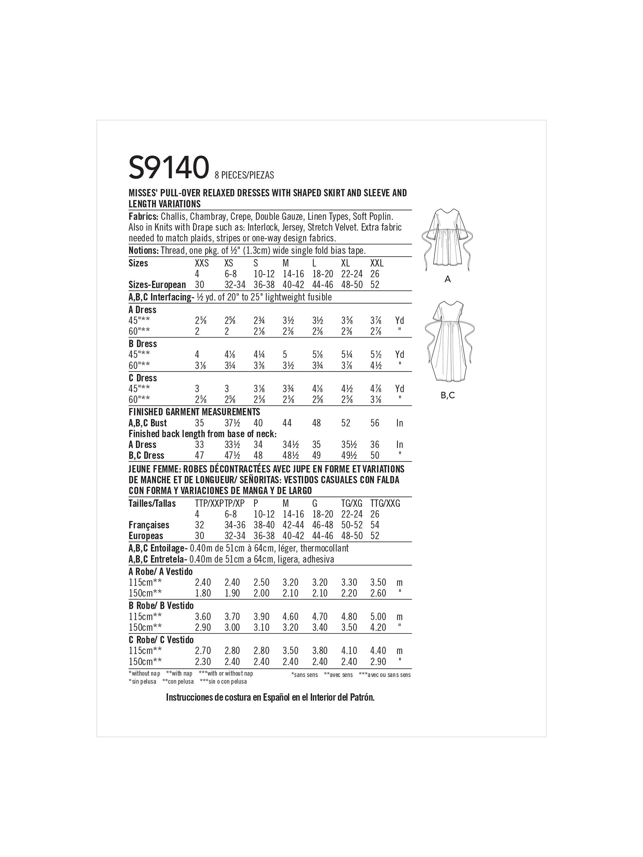 SimplicityMisses' Pullover Relaxed Dresses Sewing Pattern, S9140