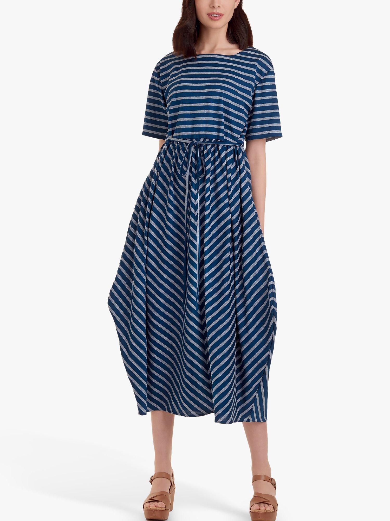 Pullover relaxed dress with shaped skirt and sleeve and length variations.