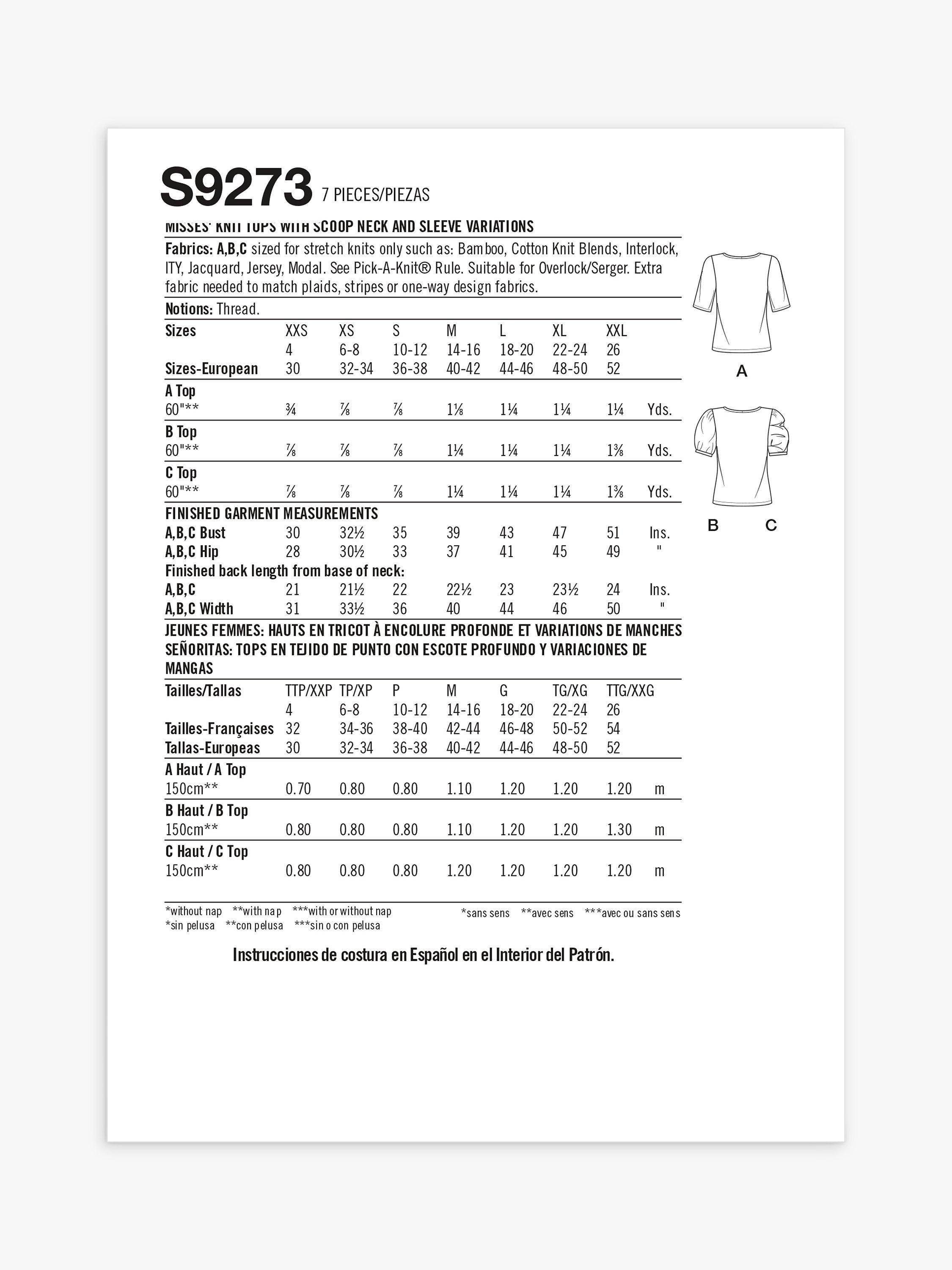SimplicityMisses' Scoop Neck Knit Top Sewing Pattern, S9273, A