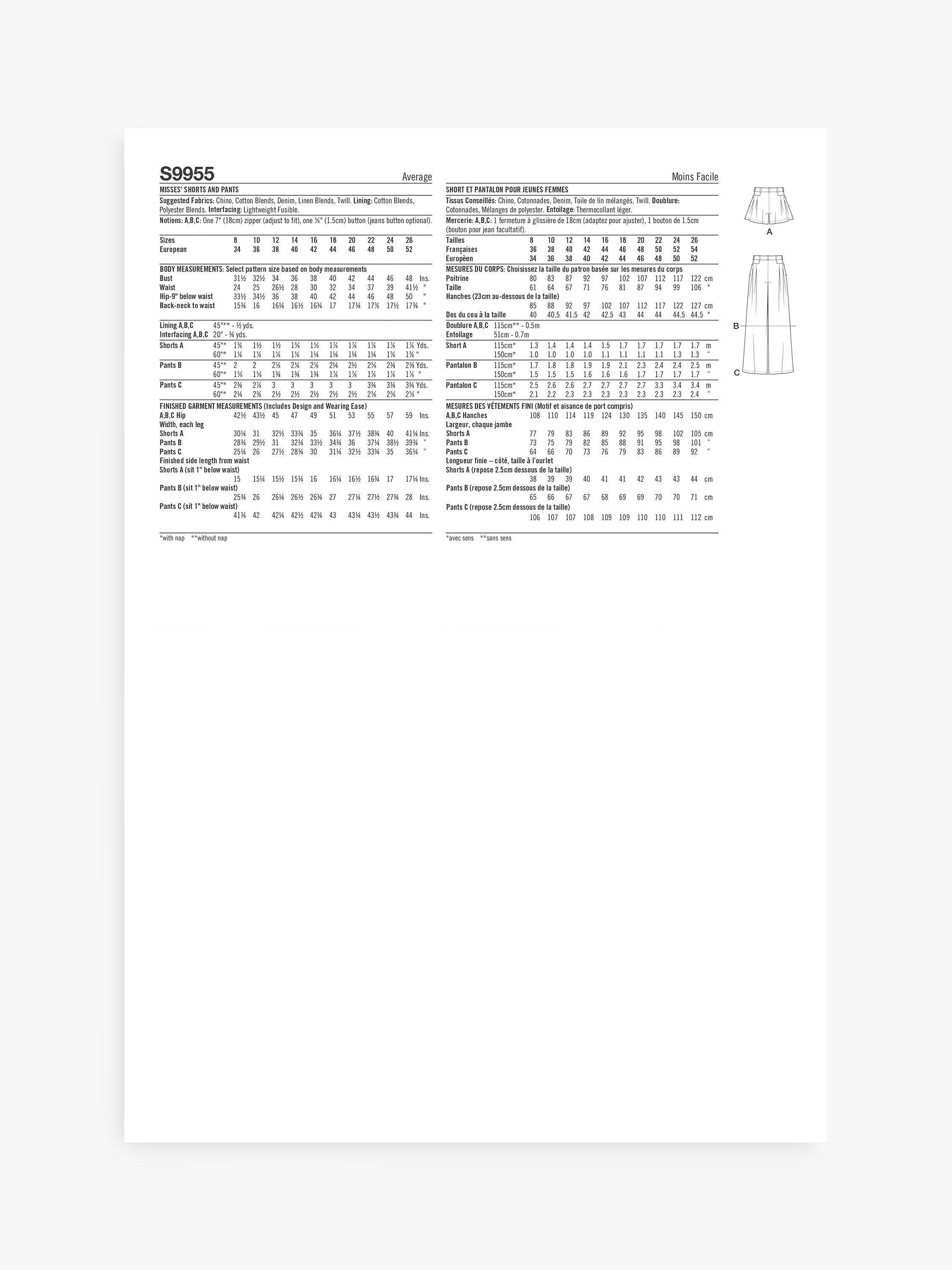 View B cropped pants, view C full length.