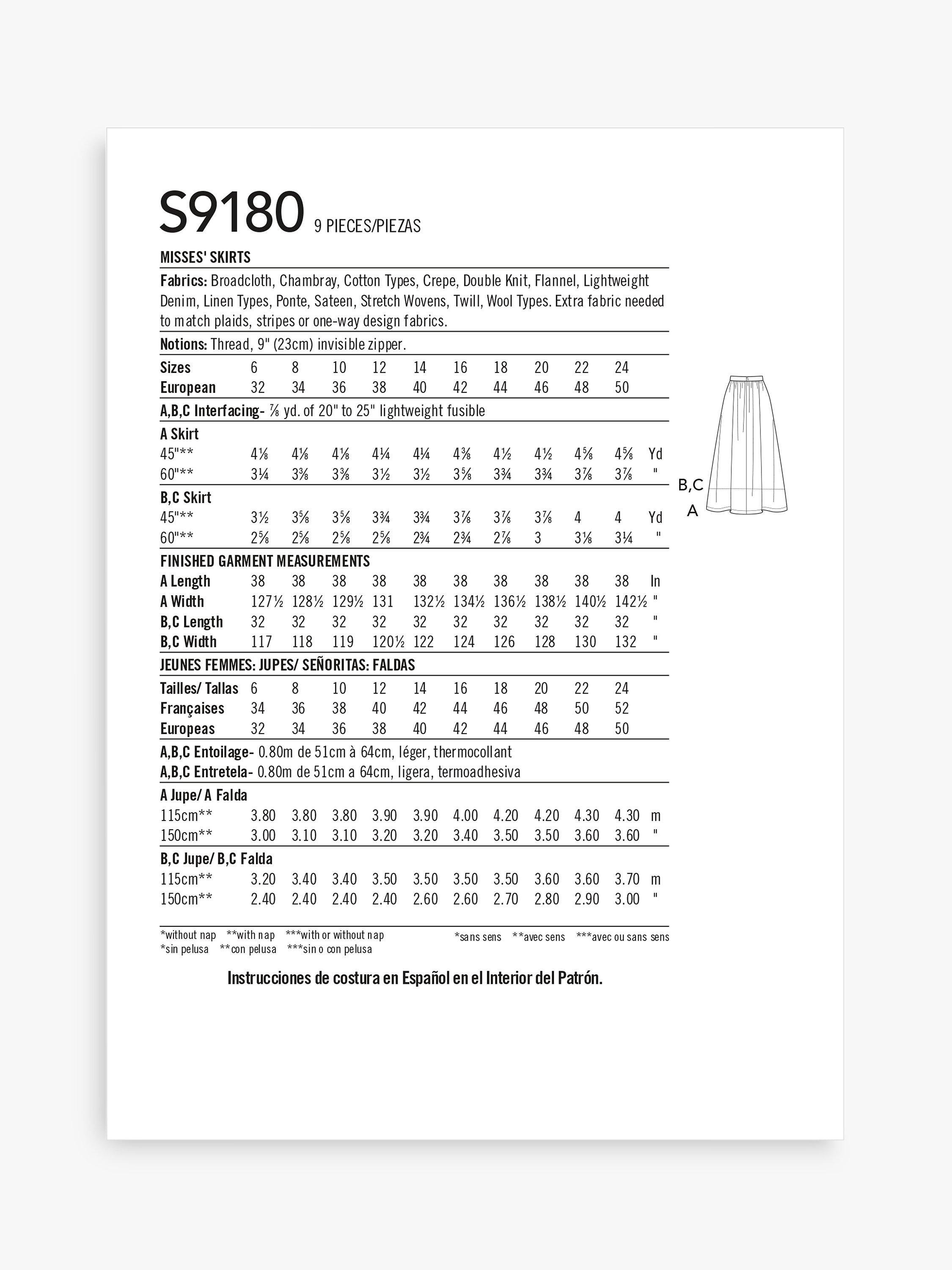SimplicityMisses' Skirt Pant Sewing Pattern, S9180