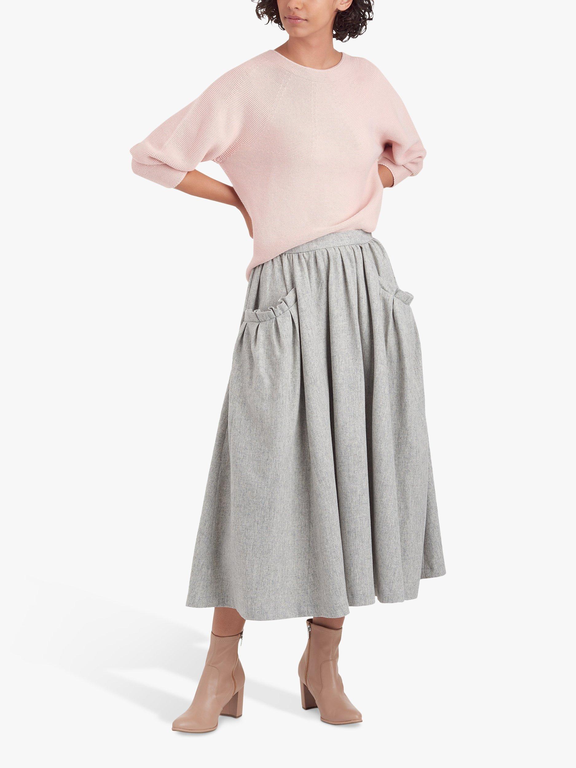 A pleated skirt with pocket and hem variations.