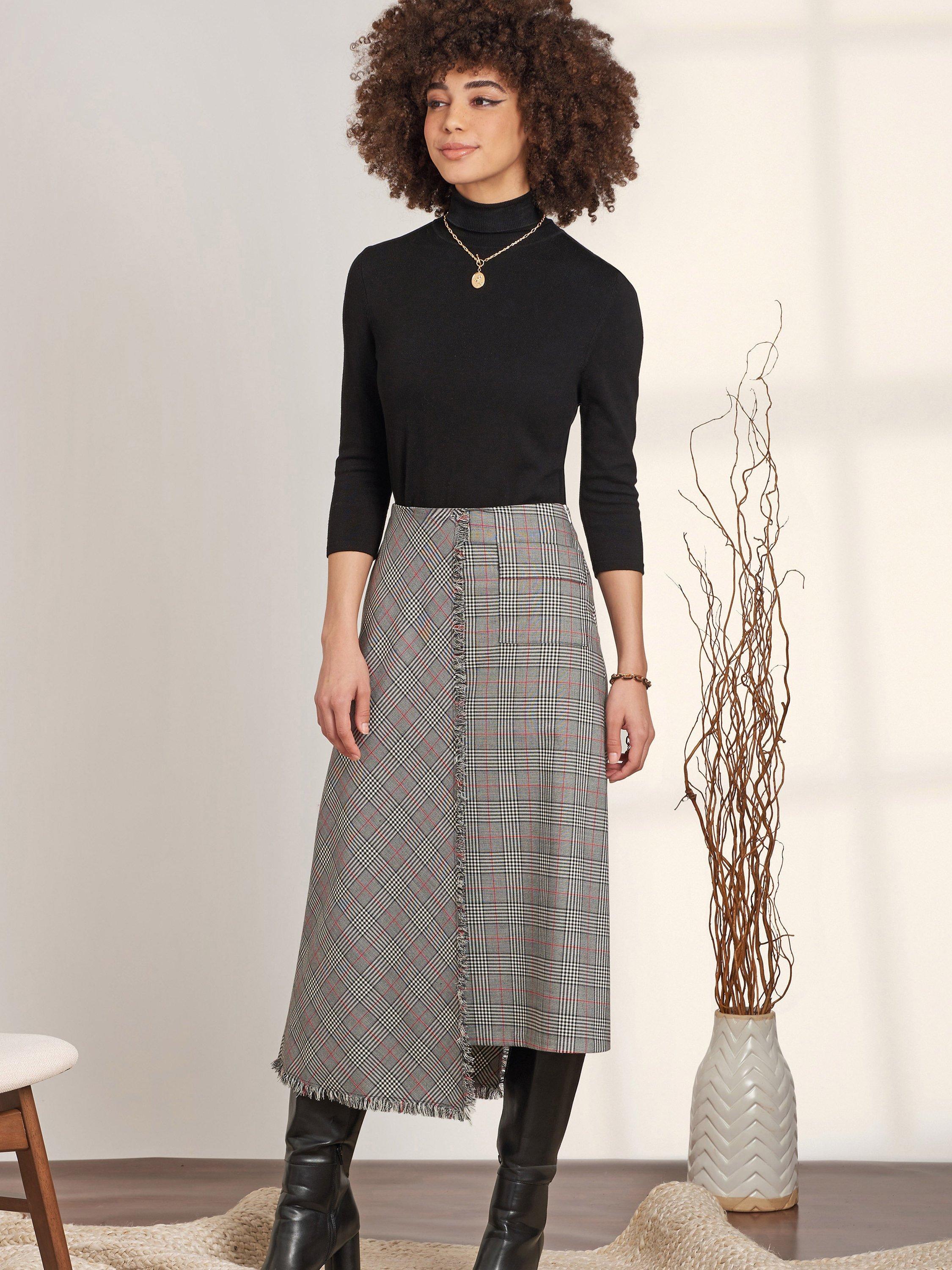 Skirts with side zip closure include asymmetrical and flared options in four lengths.