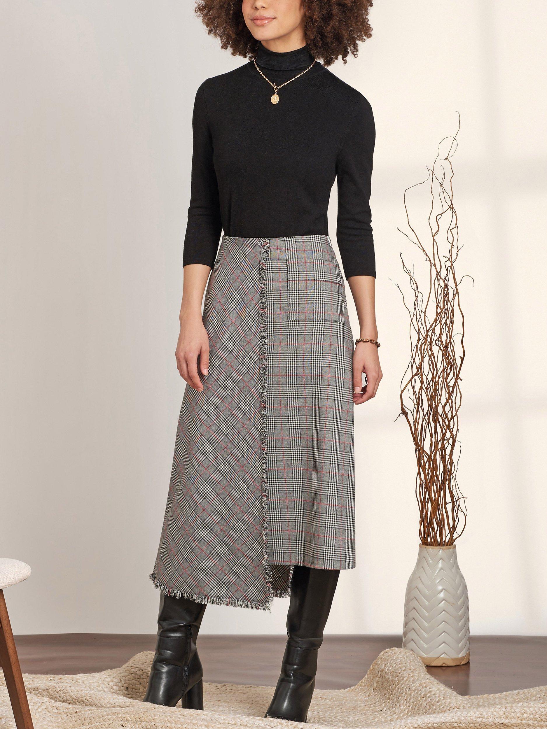 Skirts with side zip closure include asymmetrical and flared options in four lengths.
