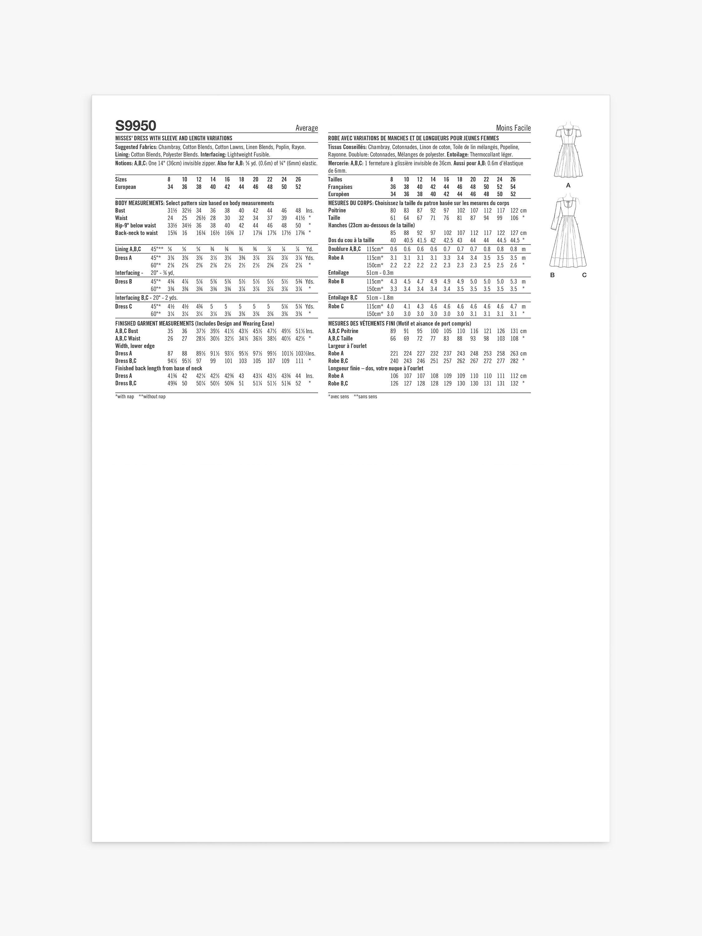 SimplicityMisses' Spaghetti Strap Dresses Sewing Pattern, S9950