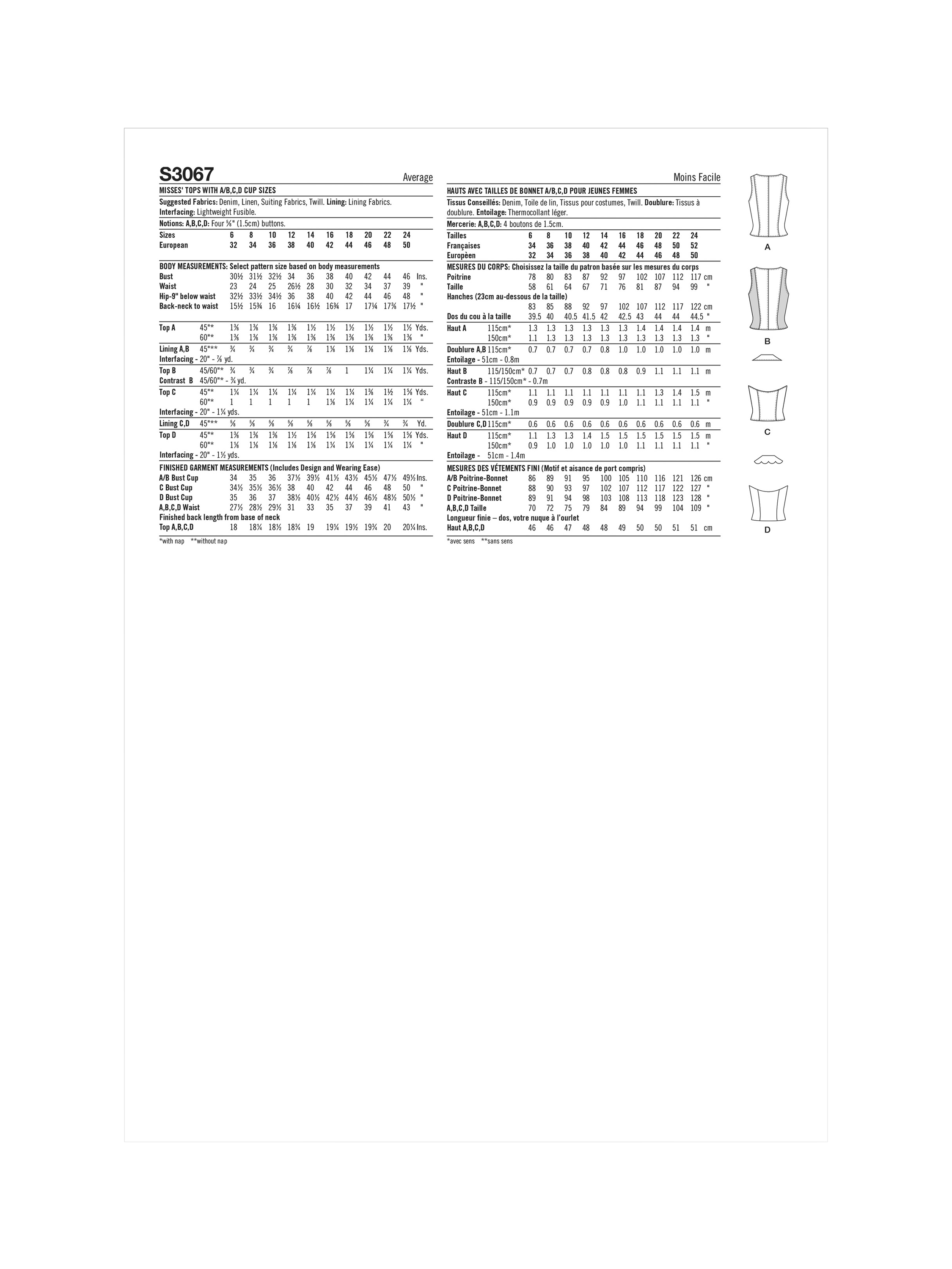 SimplicityMisses' Tops with Cup Sizes Sewing Pattern, S3067