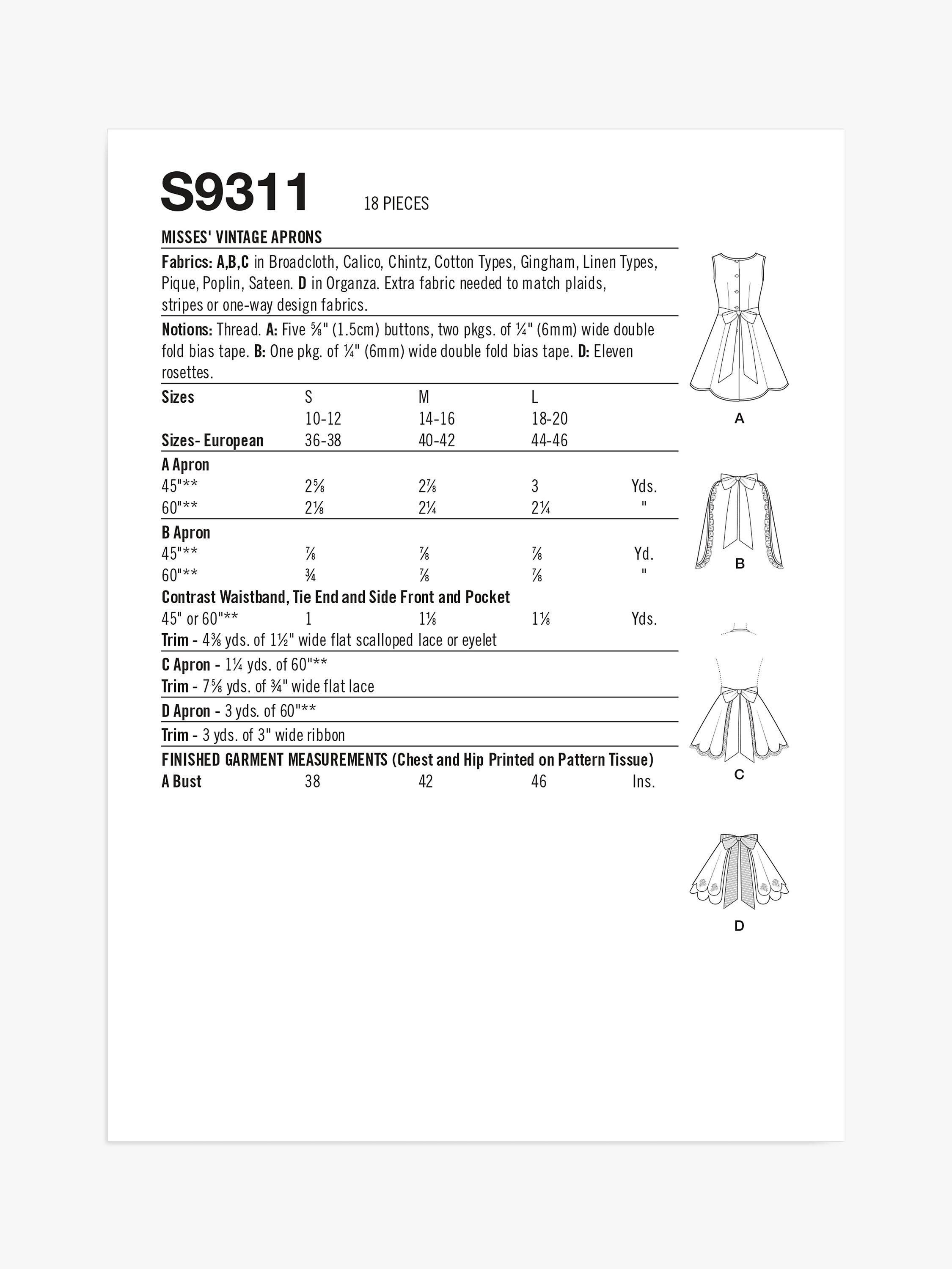 SimplicityMisses' Vintage Aprons Sewing Pattern, S9311
