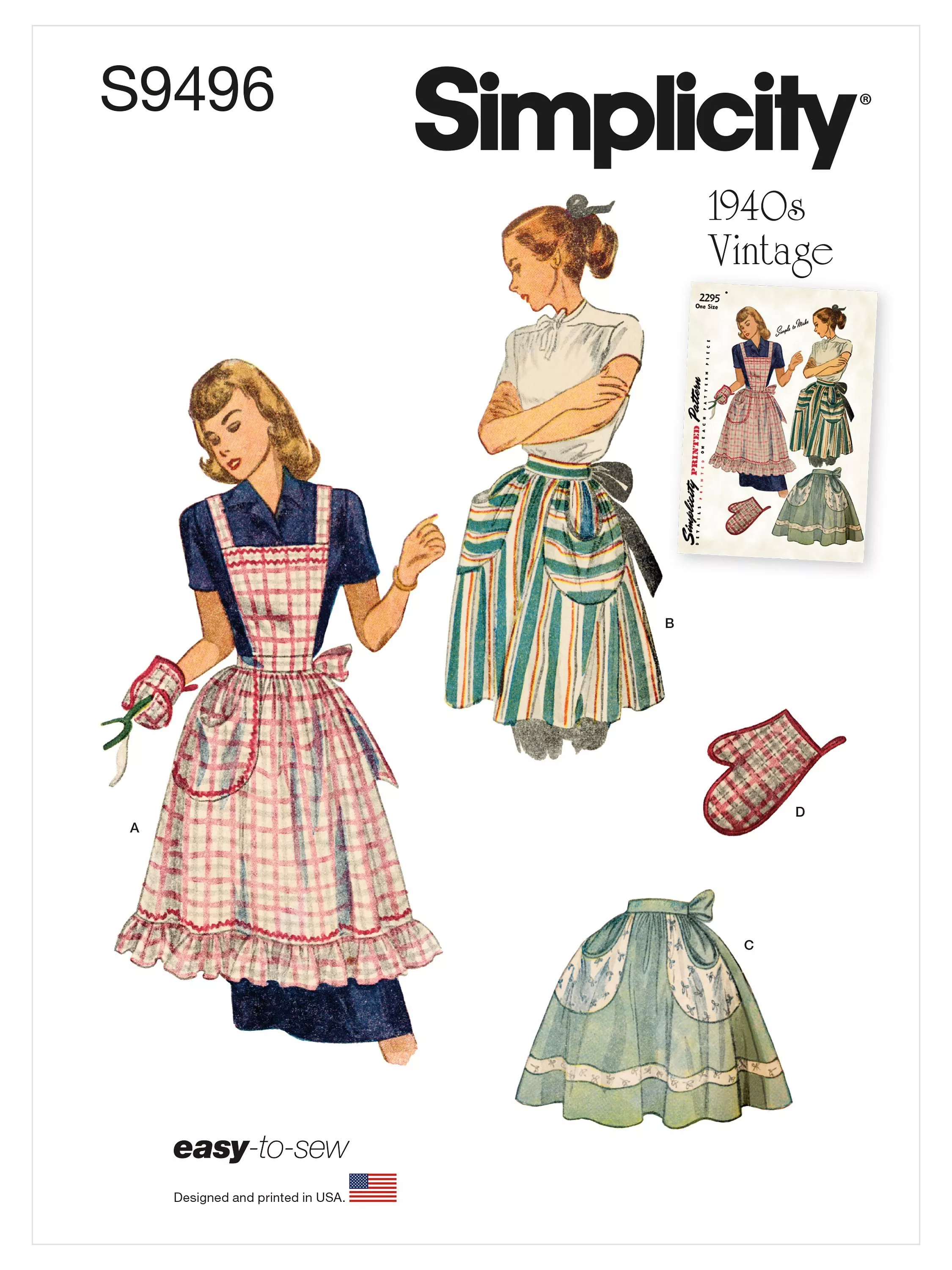SimplicityMisses' Vintage Aprons Sewing Pattern, S9496, OS