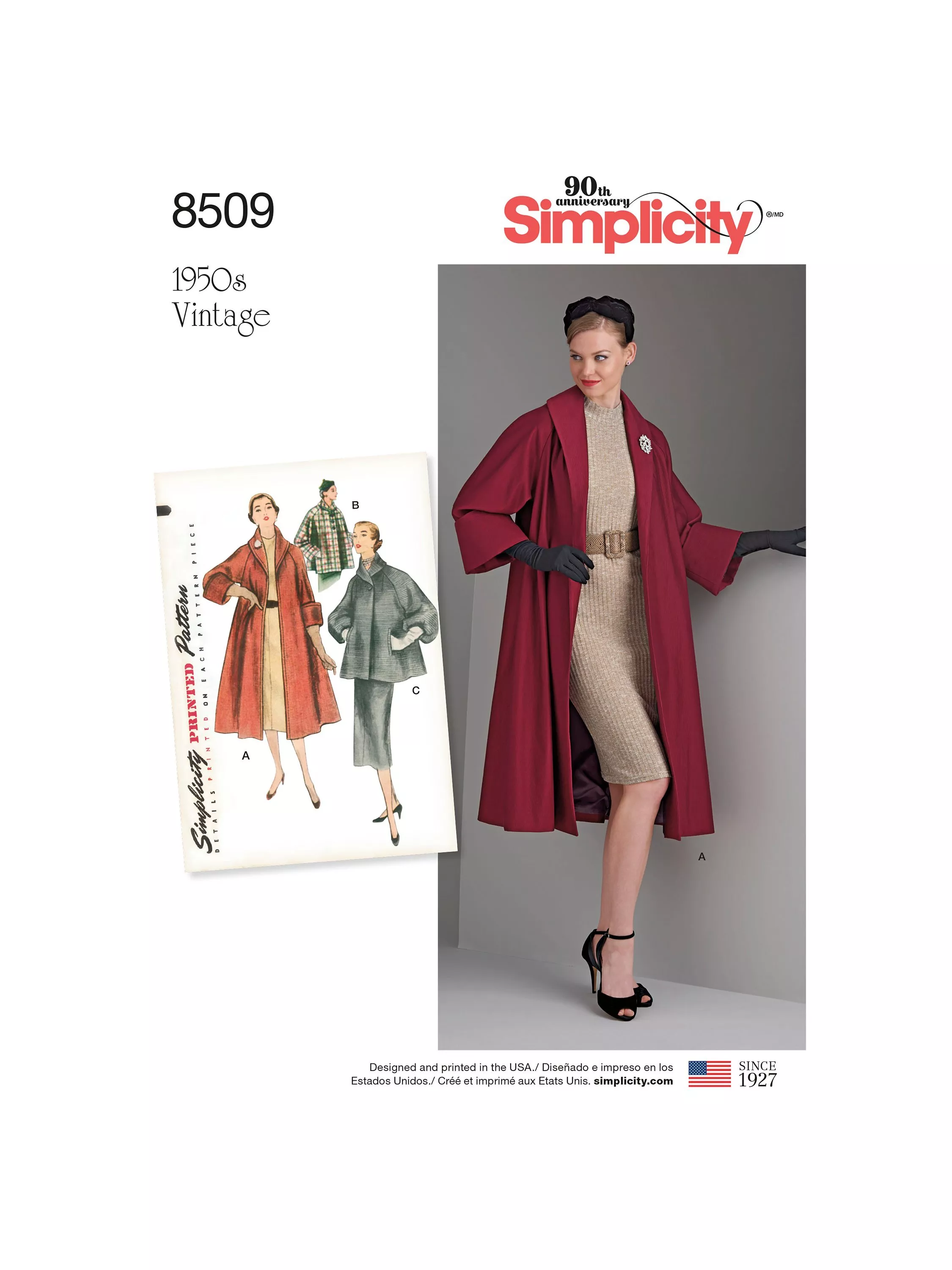 SimplicityMisses' Vintage Lined Coat and Jacket Sewing Pattern, S8509