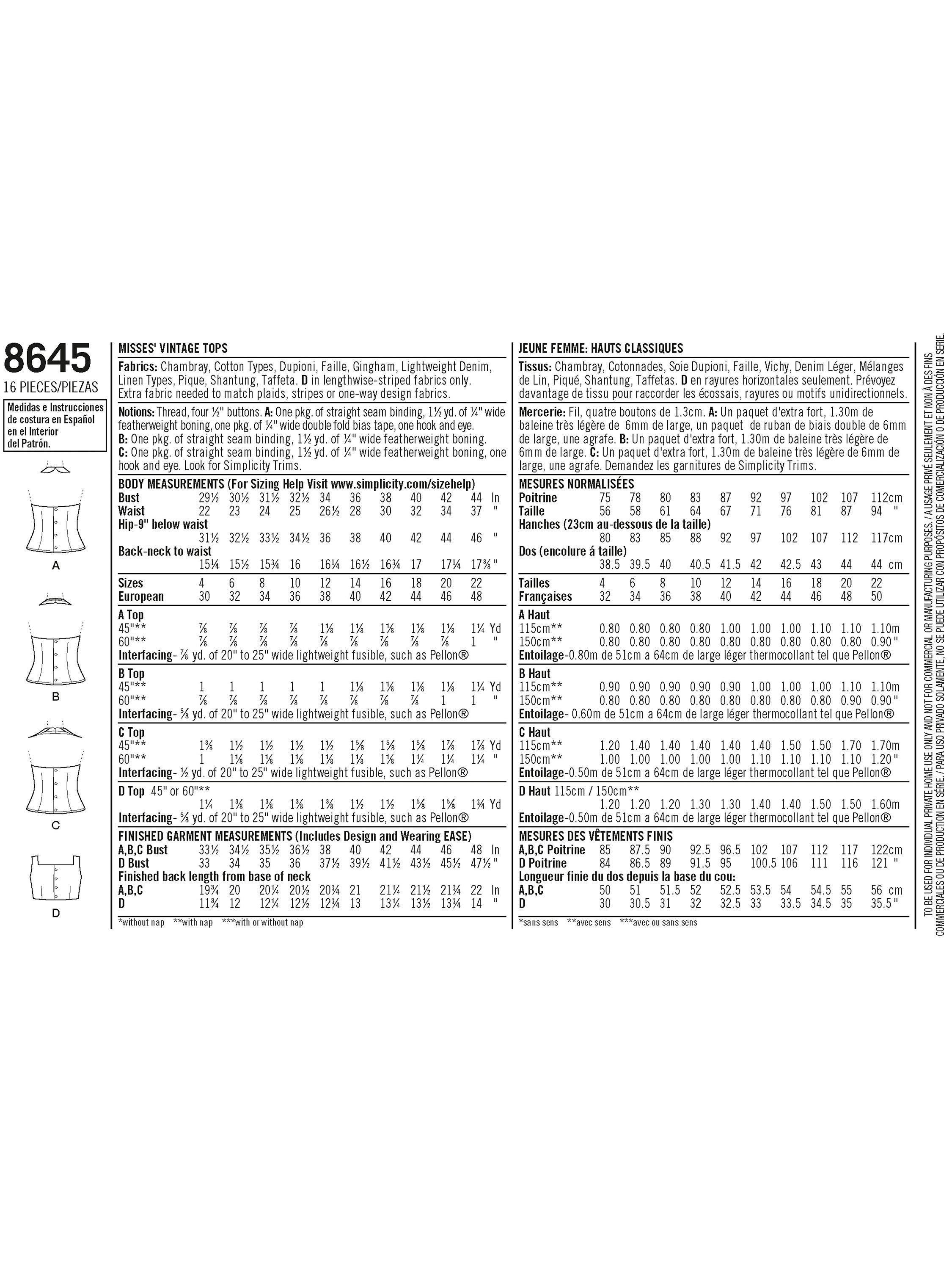 SimplicityMisses' Vintage Tops, Sewing Pattern, S8645, D5