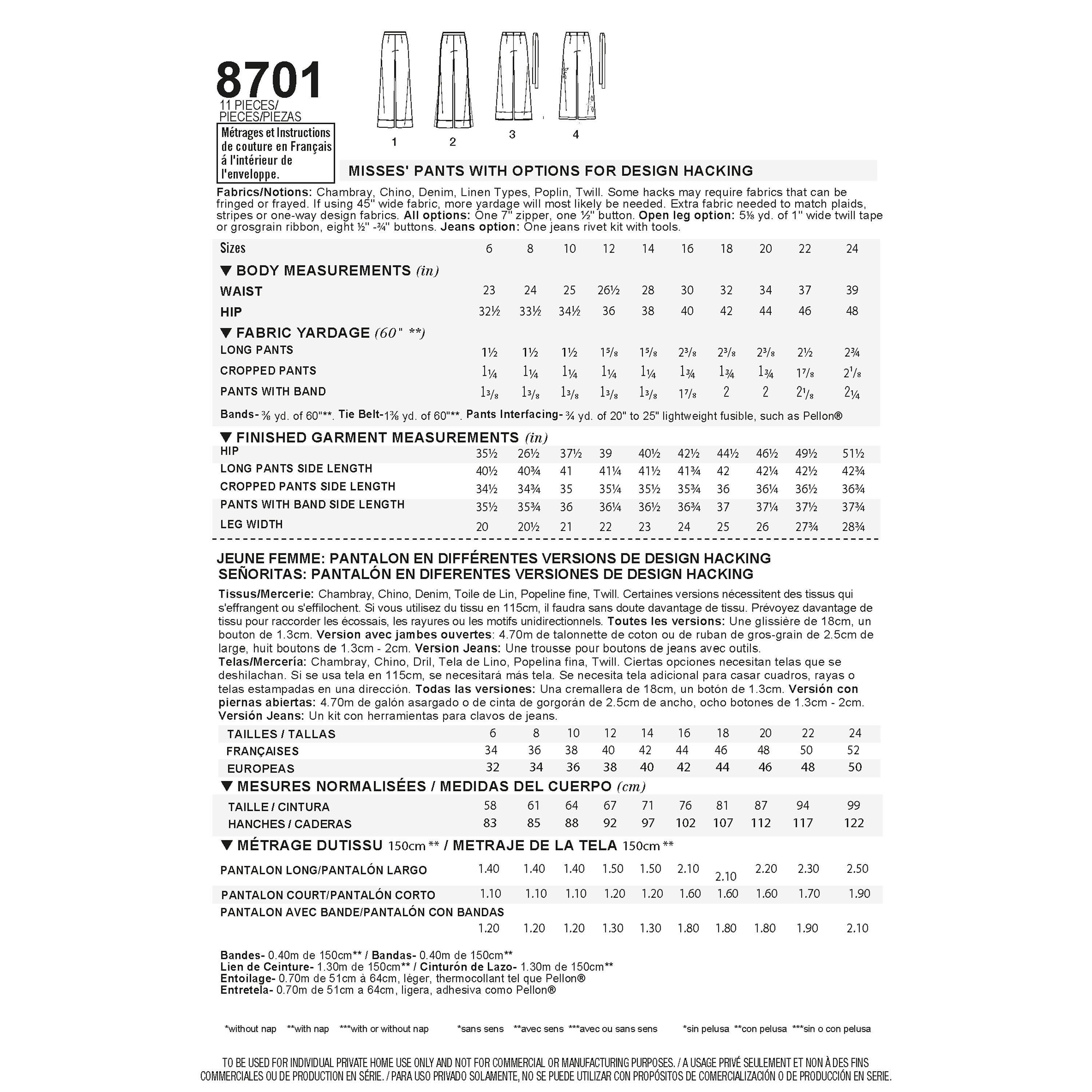 SimplicityPattern Hacking Collection Trousers Sewing Pattern, 8701
