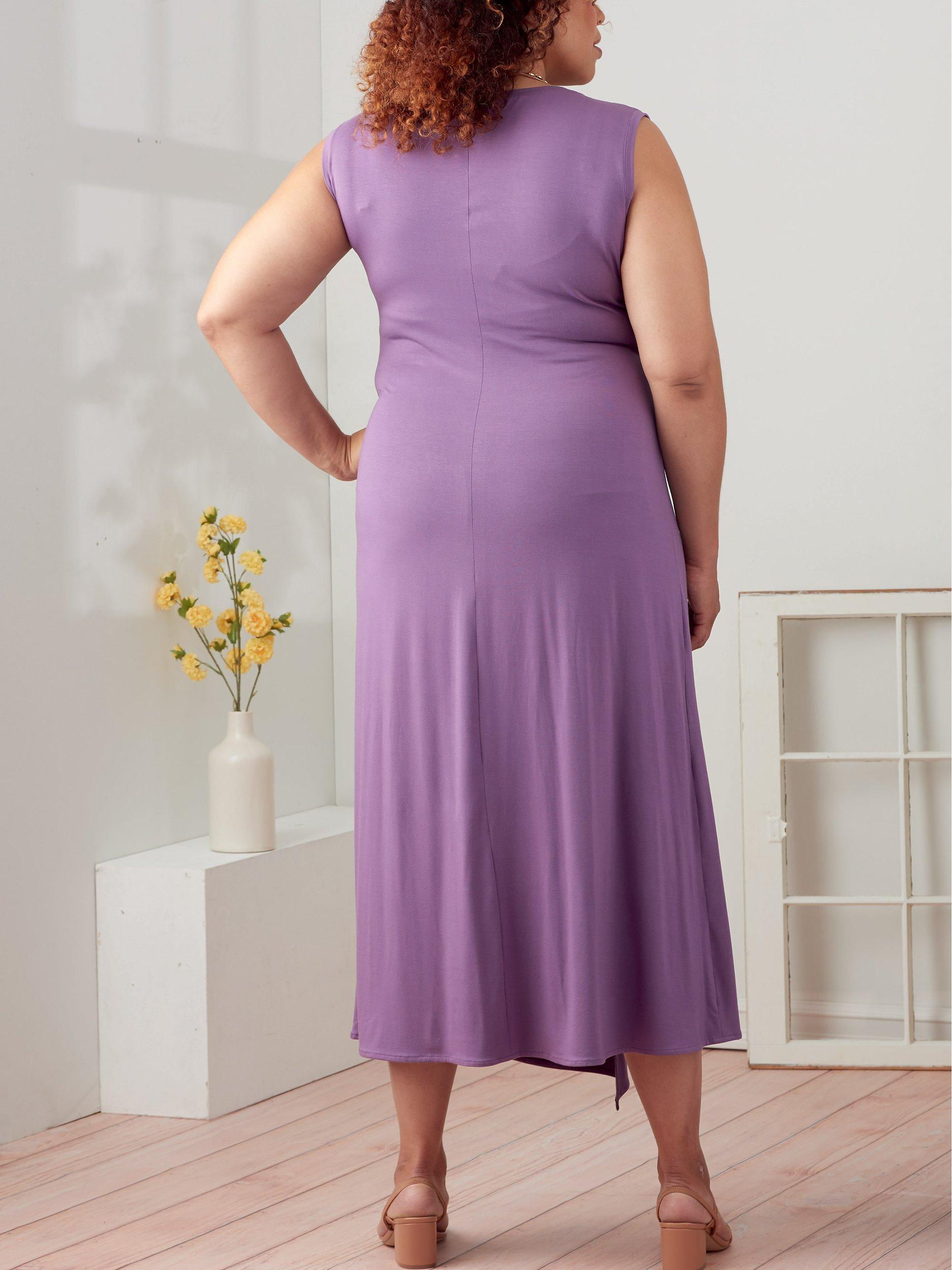 Women's knit dresses and tunic with wrap and tie detail, three lengths and sleeve variations.