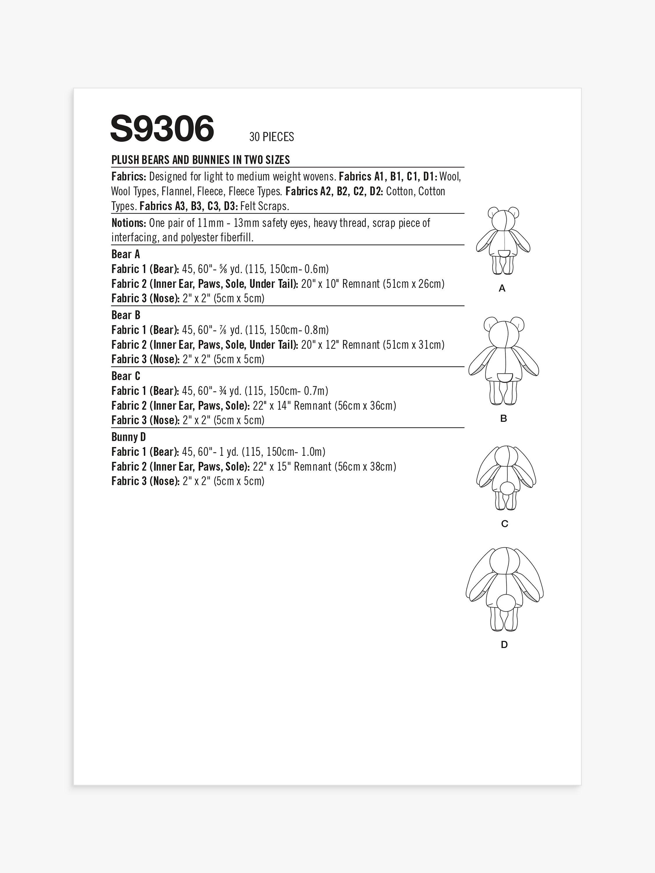 SimplicityPlush Bears and Bunnies Sewing Pattern, S9306
