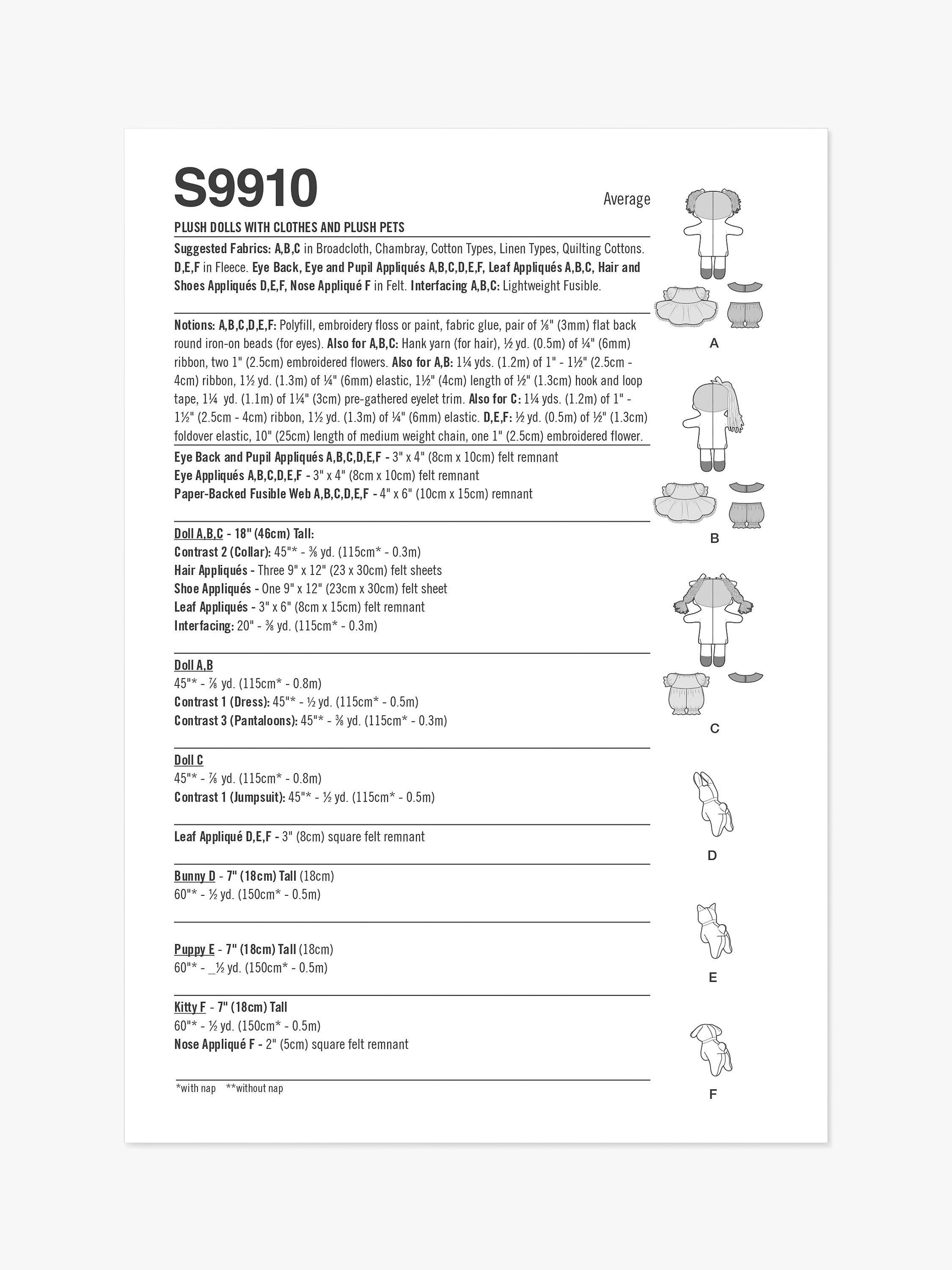 SimplicityPlush Dolls with Pets Sewing Pattern, S9910