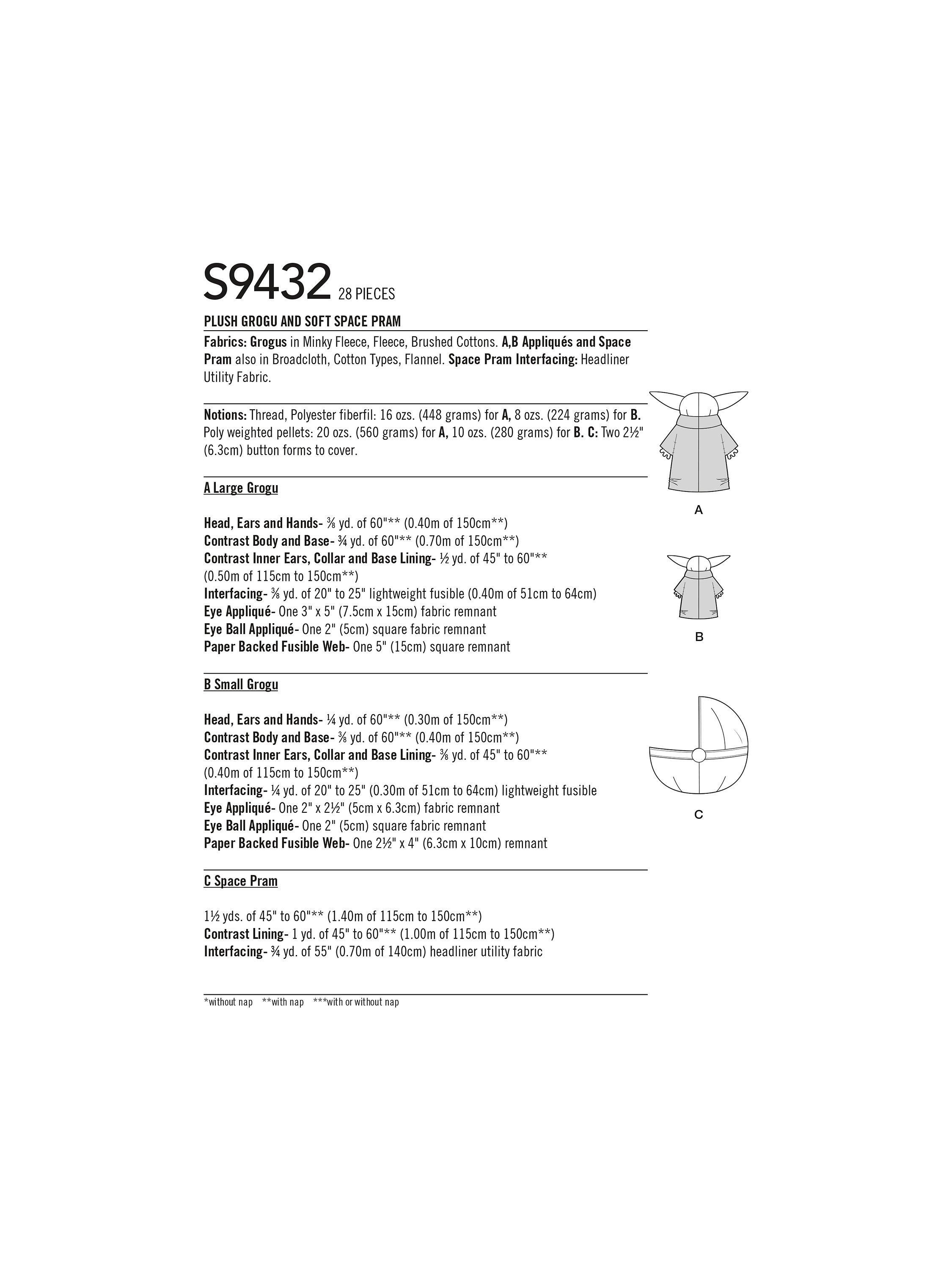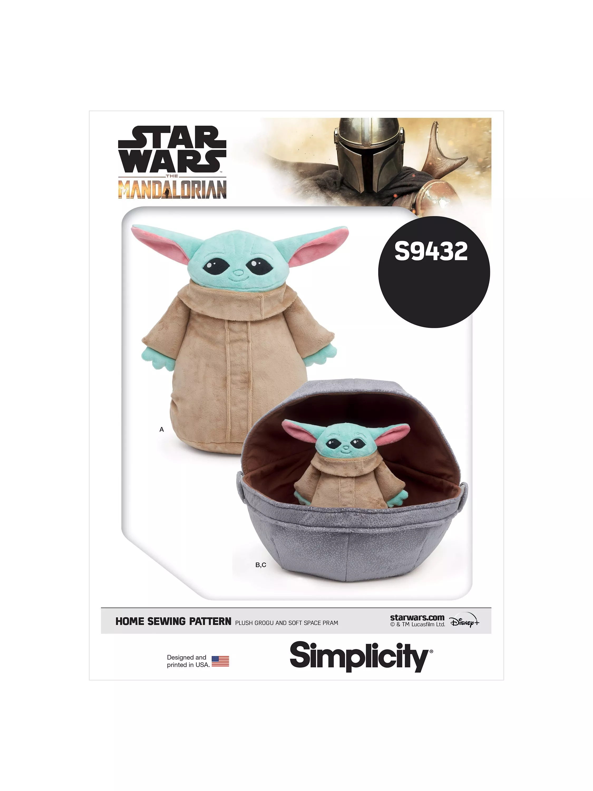 SimplicityPlush Grogu and Soft Space Pram Toy Sewing Pattern, S9432, OS