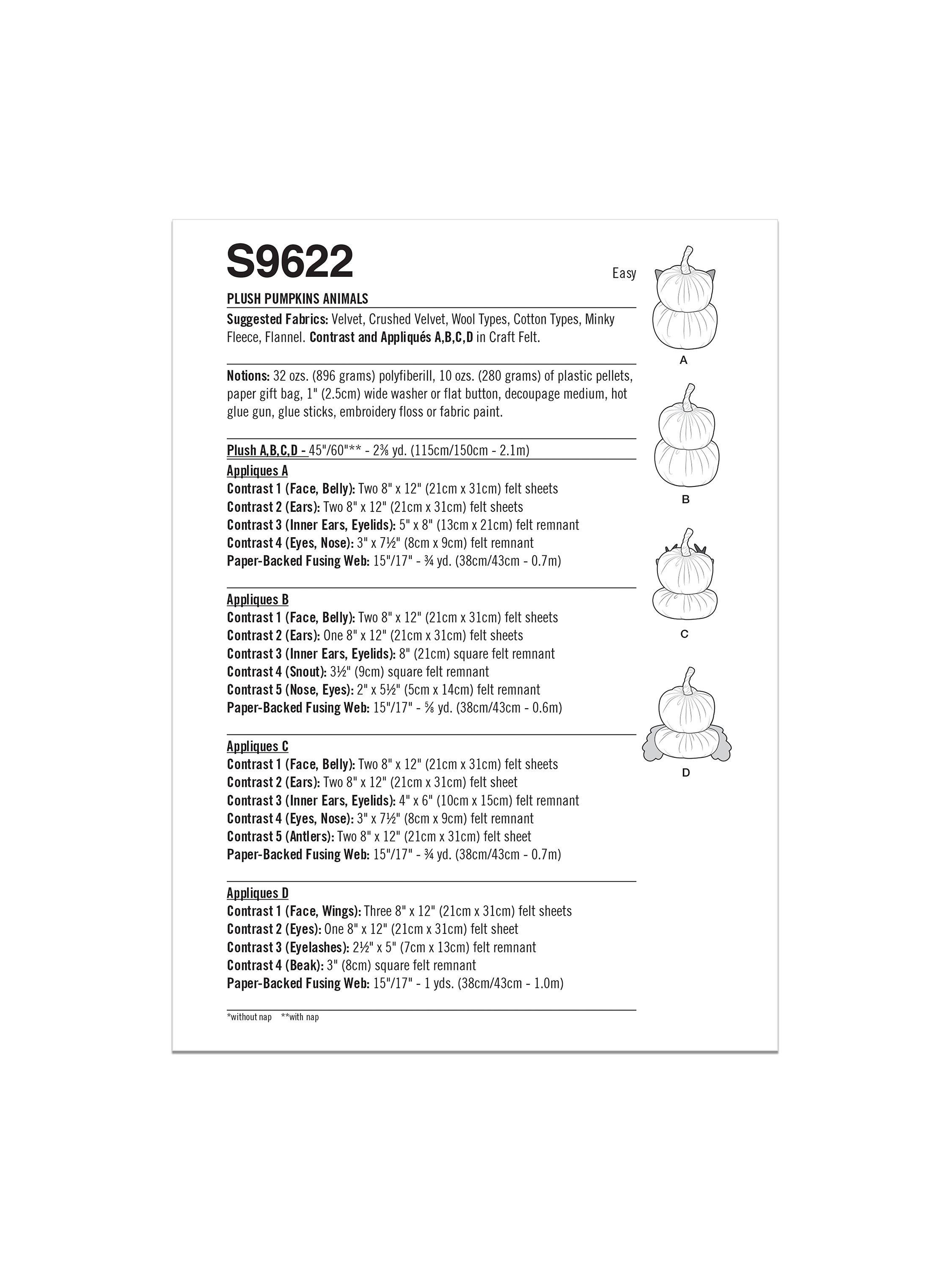 SimplicityPlush Pumpkin Animals Sewing Pattern, S9622