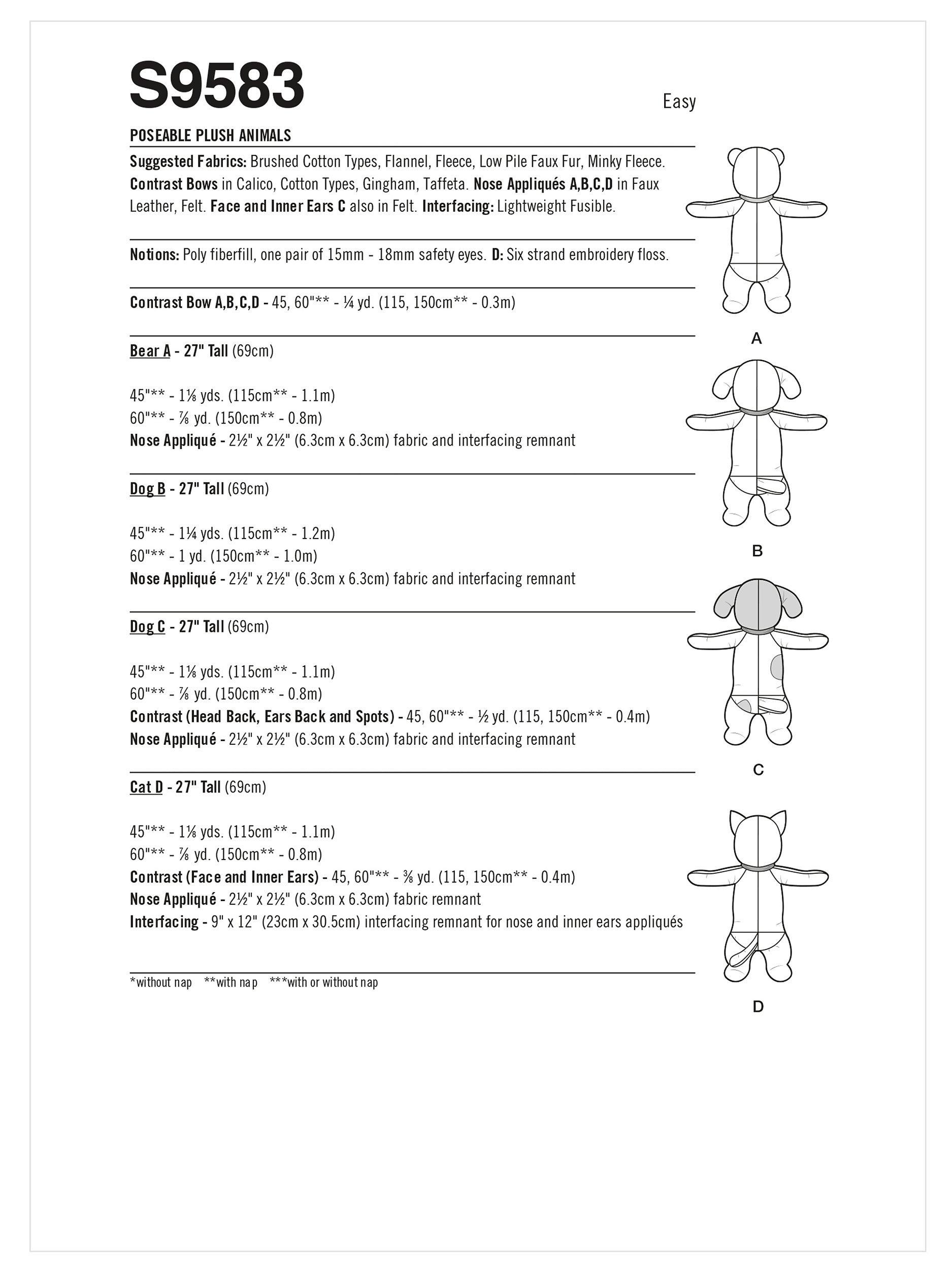 SimplicityPoseable Plush Animals Sewing Pattern, S9583OS