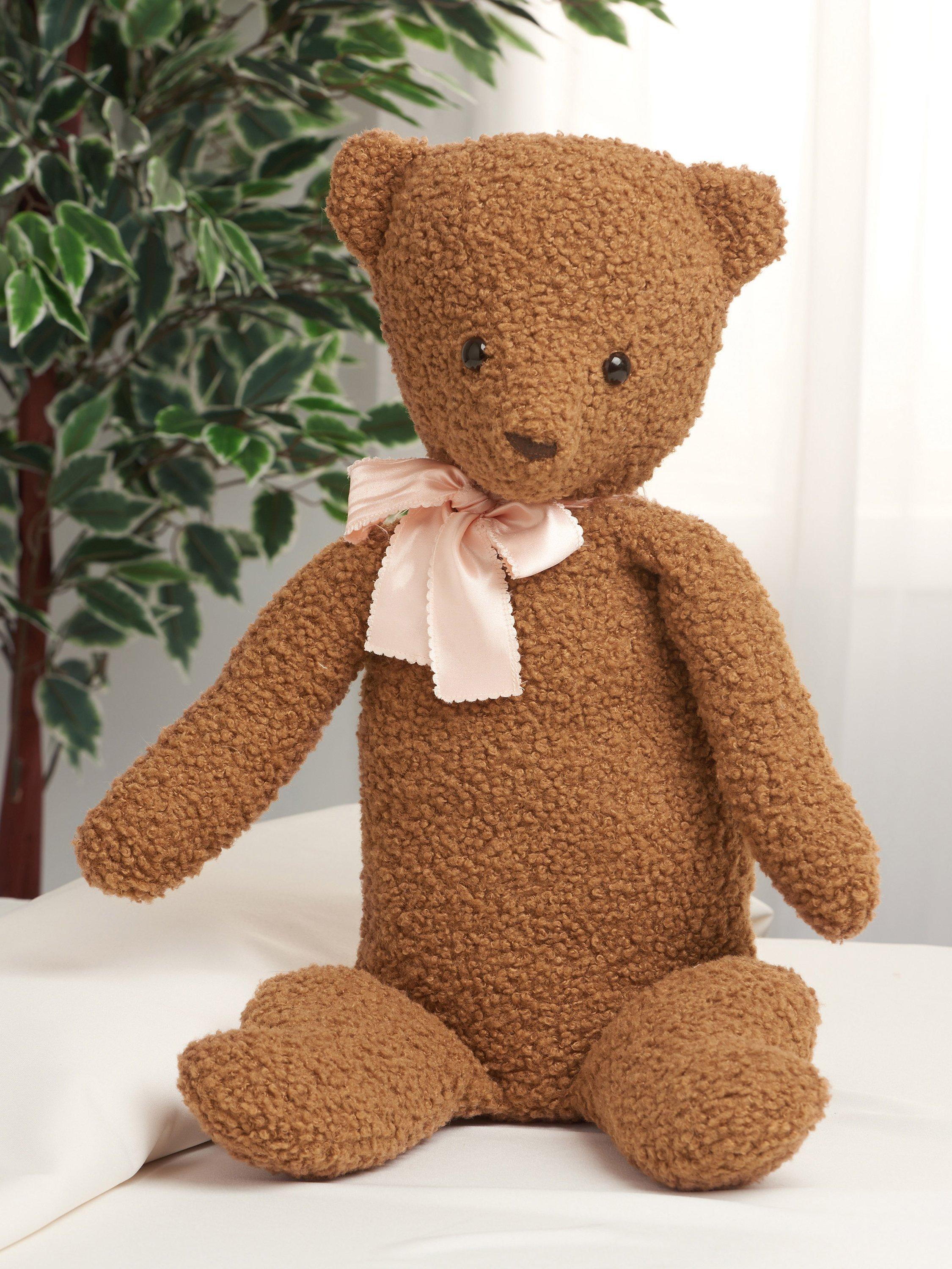 Each plush is easy to construct from soft low pile fabrics and feature safety eyes, appliquéd noses and fabric neck bow edged with pinking shears.