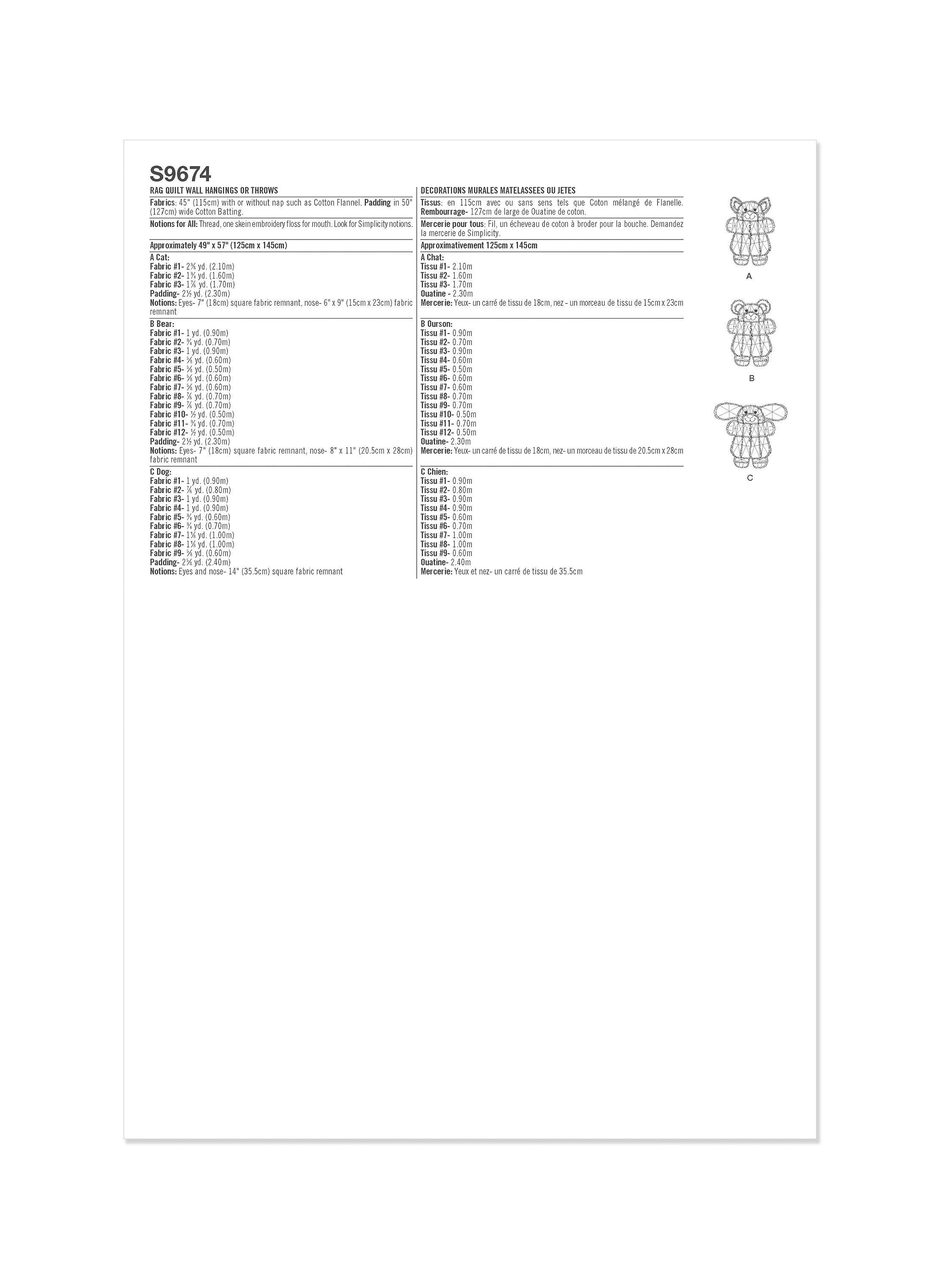 SimplicityRag Quilt Wall Hangings/Throws Sewing Pattern, S9674OS