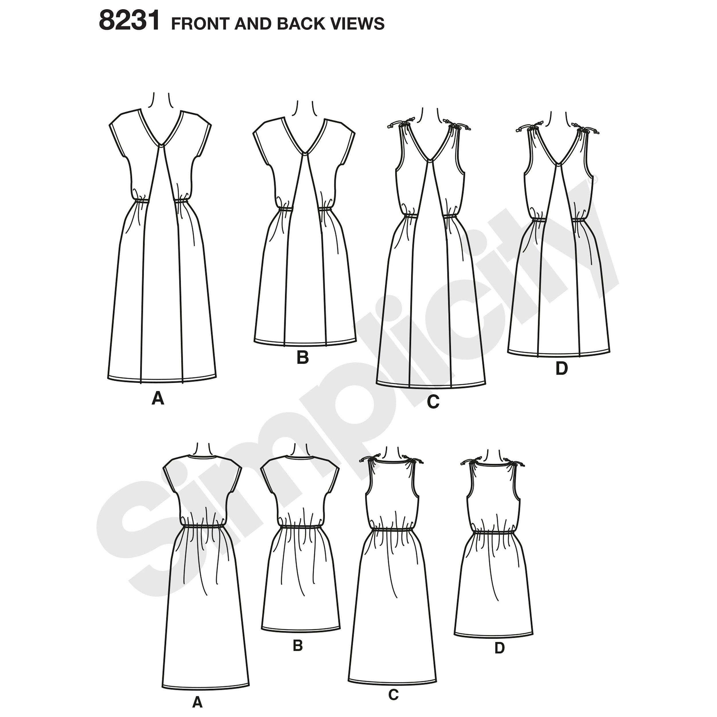 Following detailed instructions and illustrations to create an elastic waist dress with a V-neckline and options to make them over the knee or midi length, cap sleeve or sleeveless with shoulder ties. Please note, this pattern is suitable for US sizes 6-22.